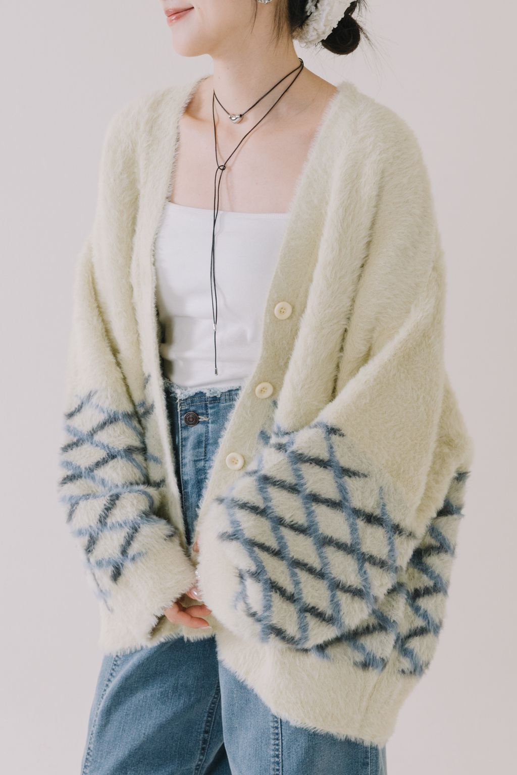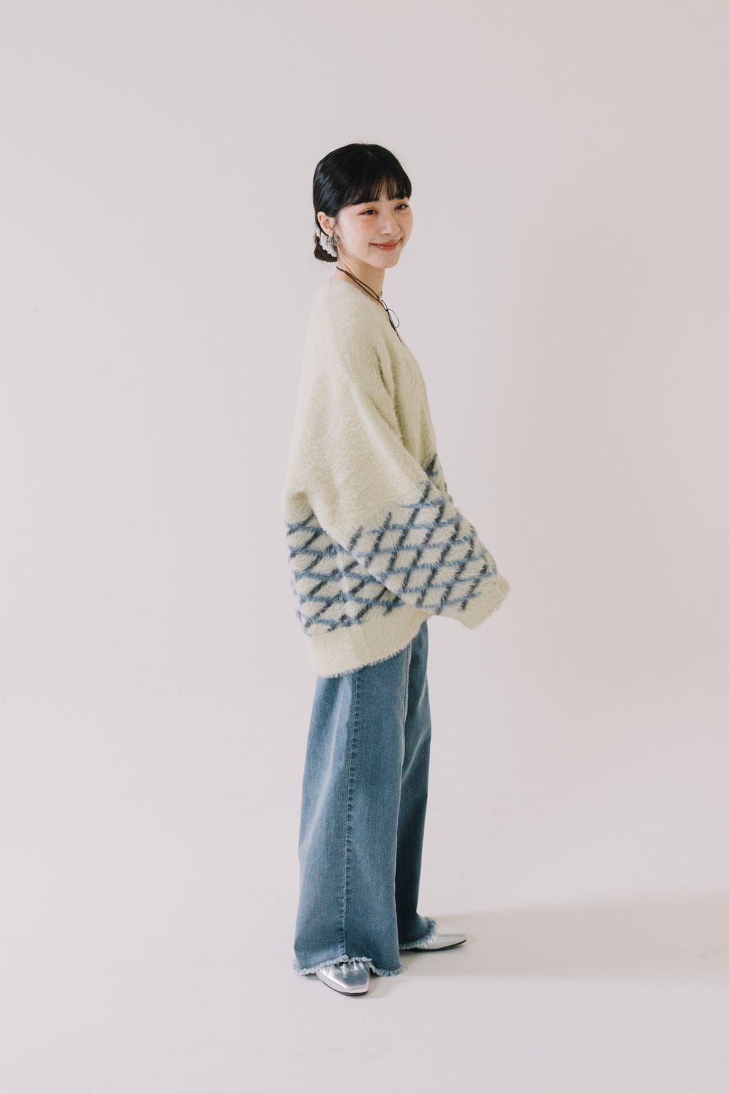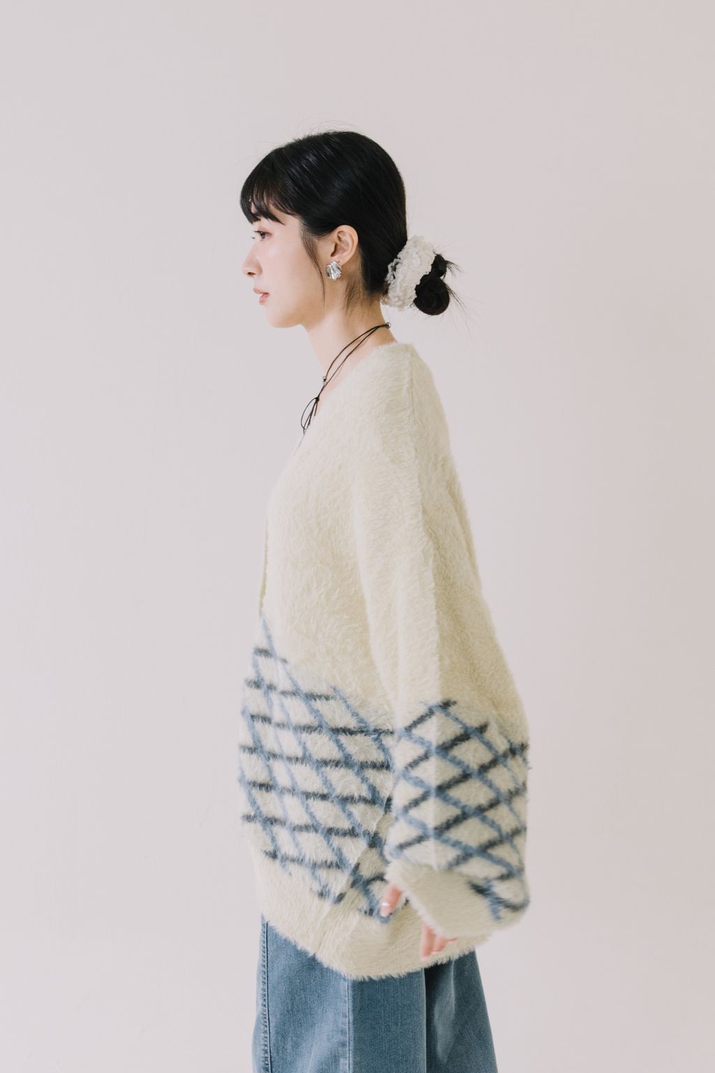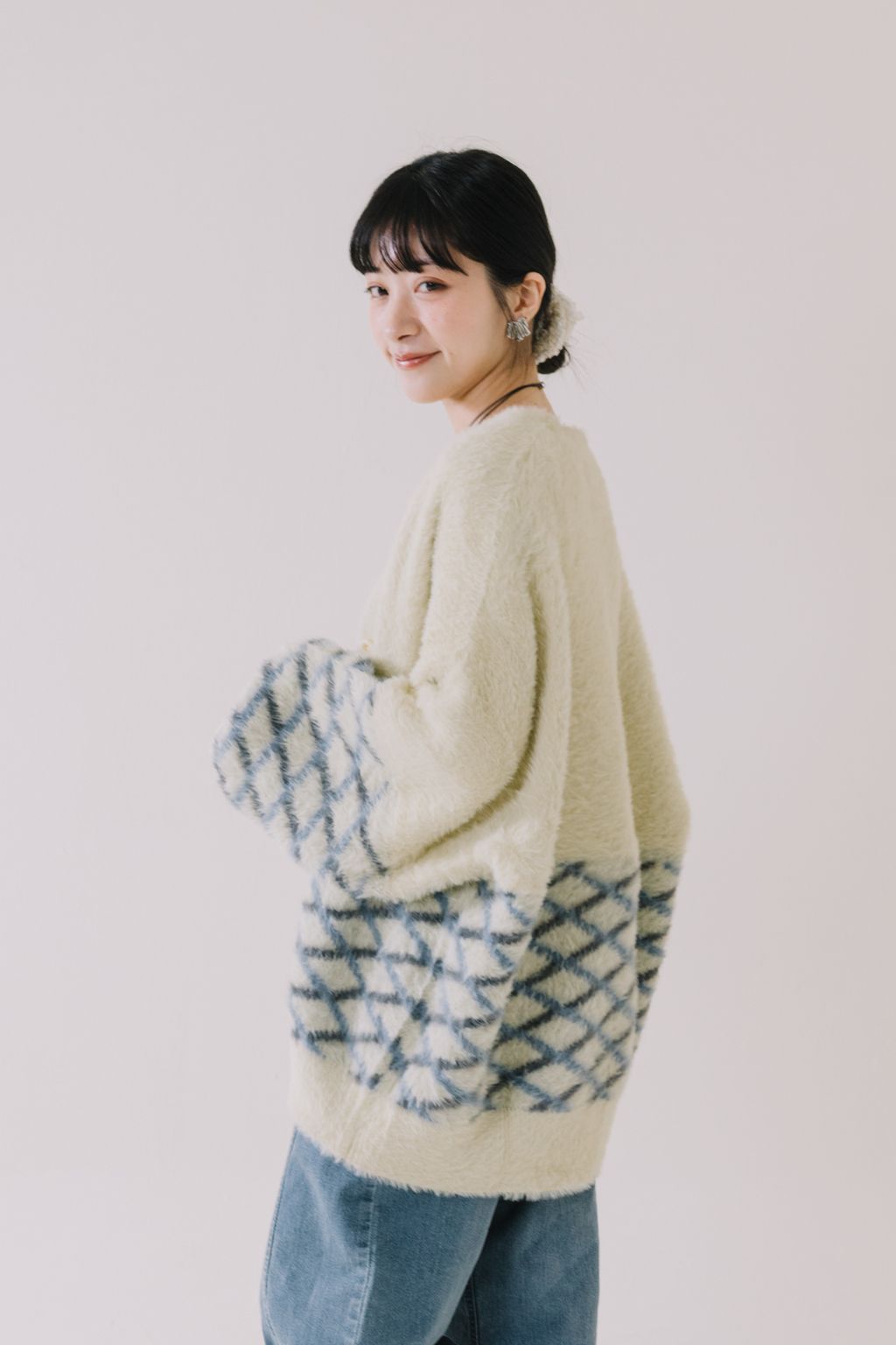 推!小眾品牌!菱格紋毛絨針織上衣