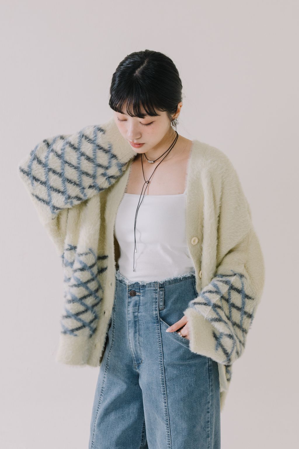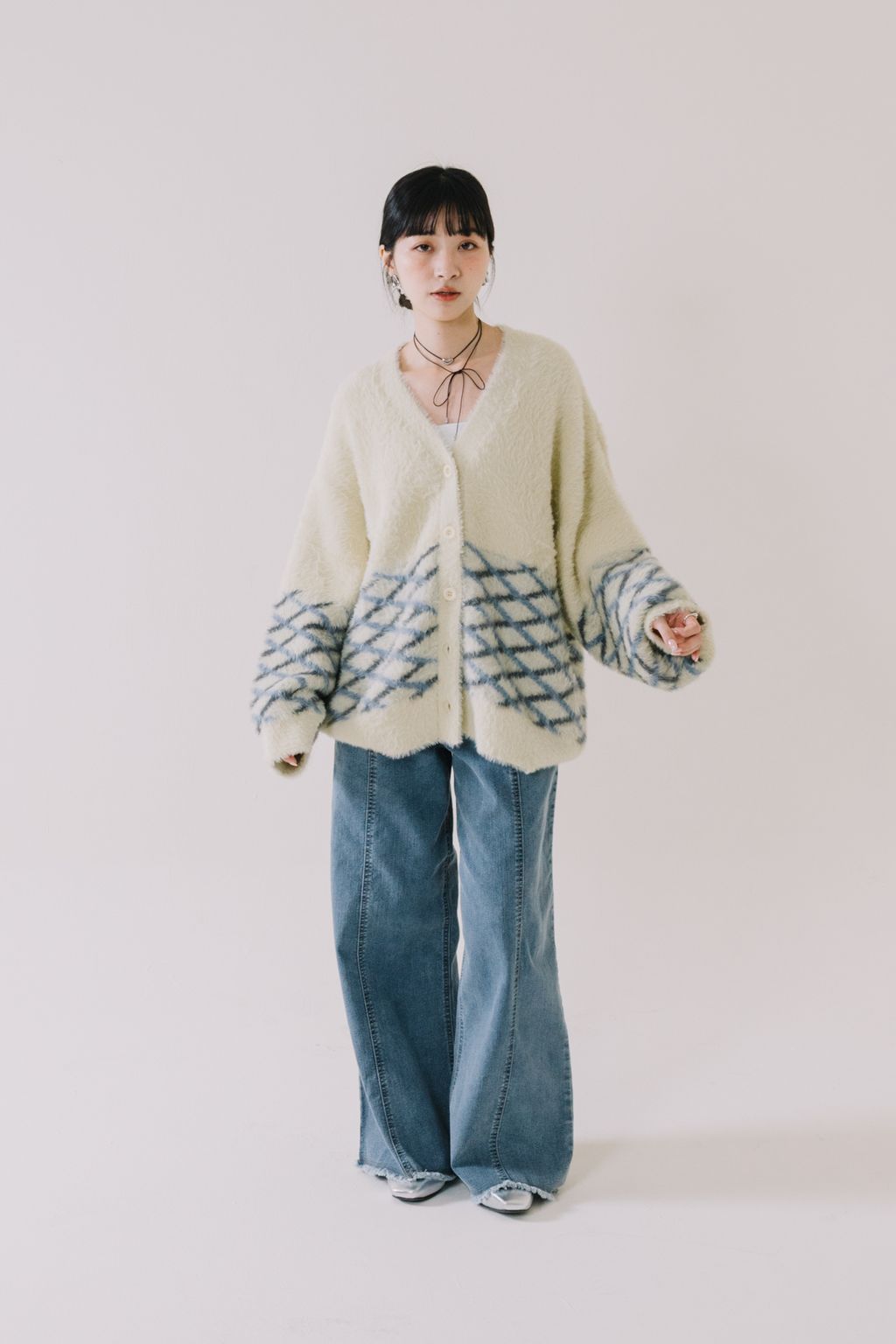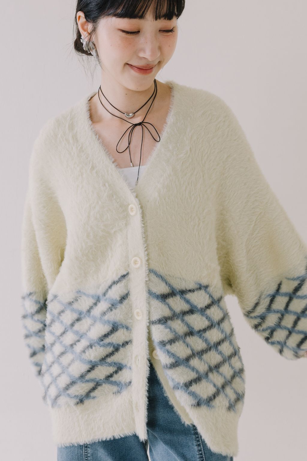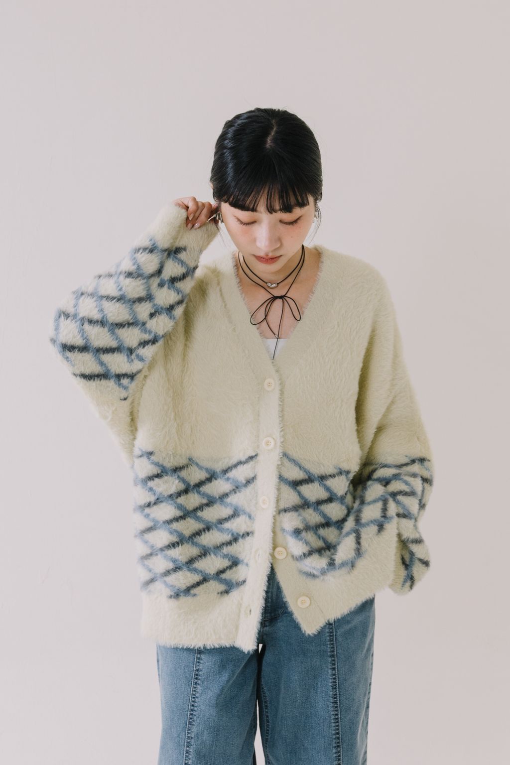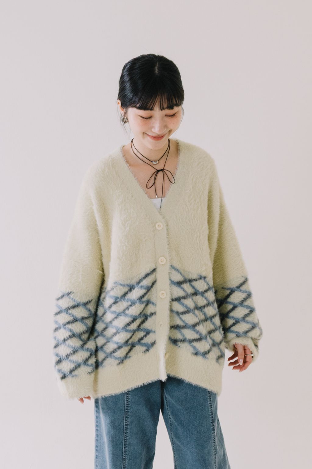 推!小眾品牌!菱格紋毛絨針織上衣