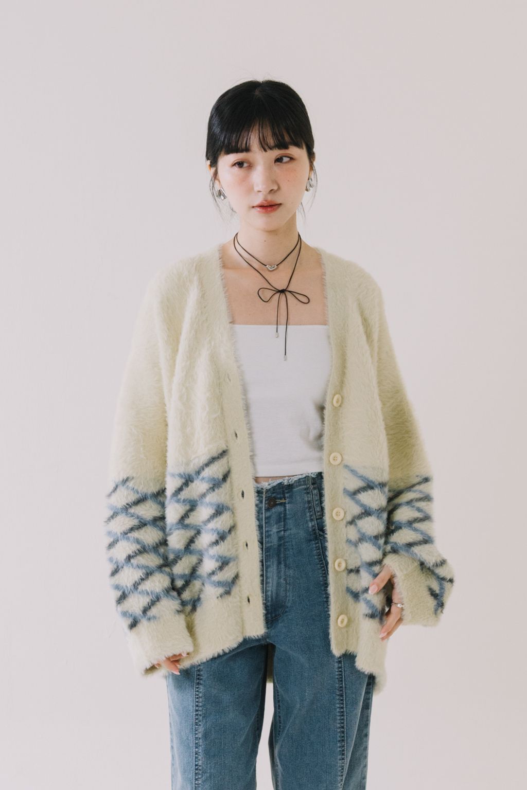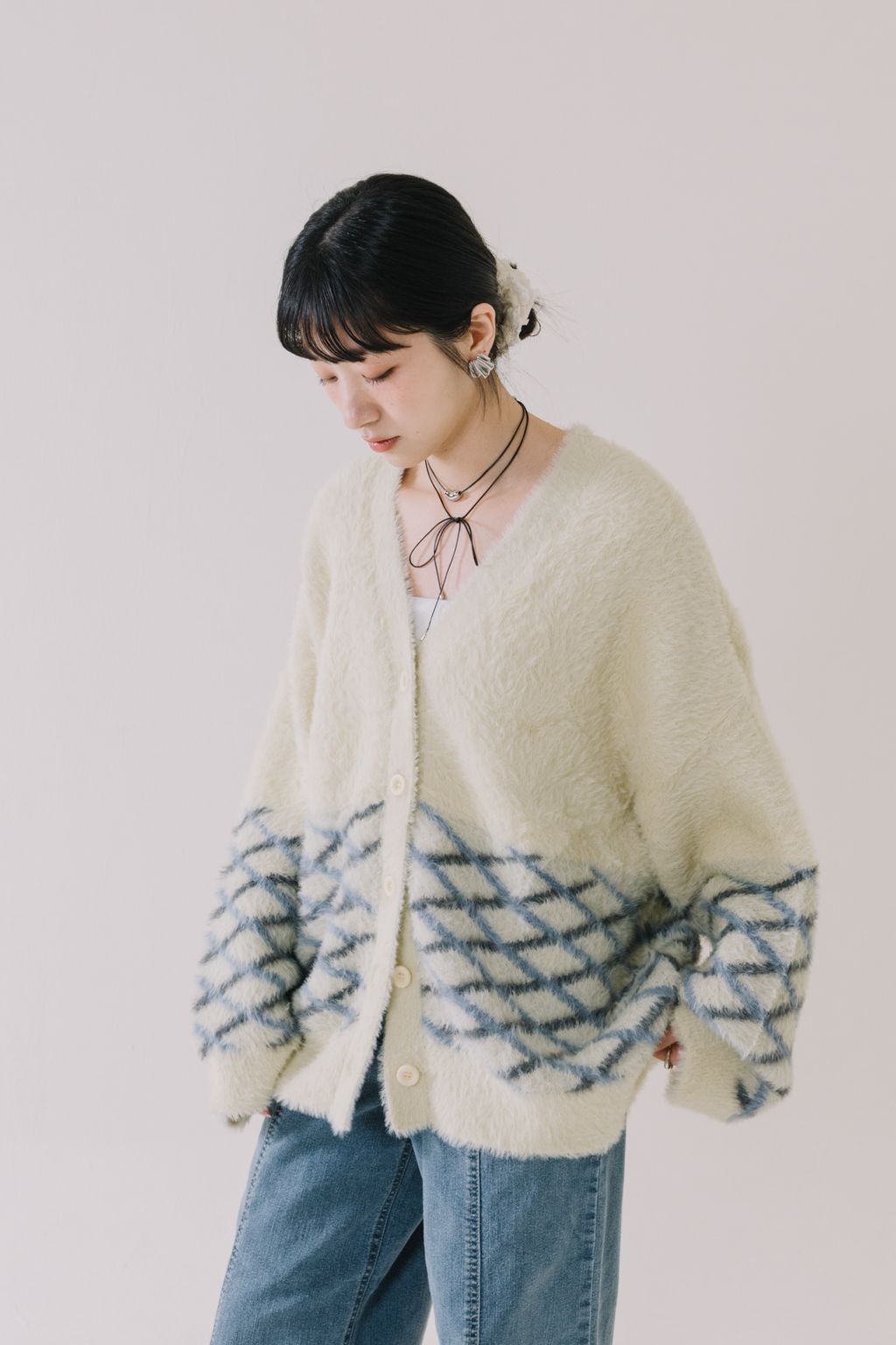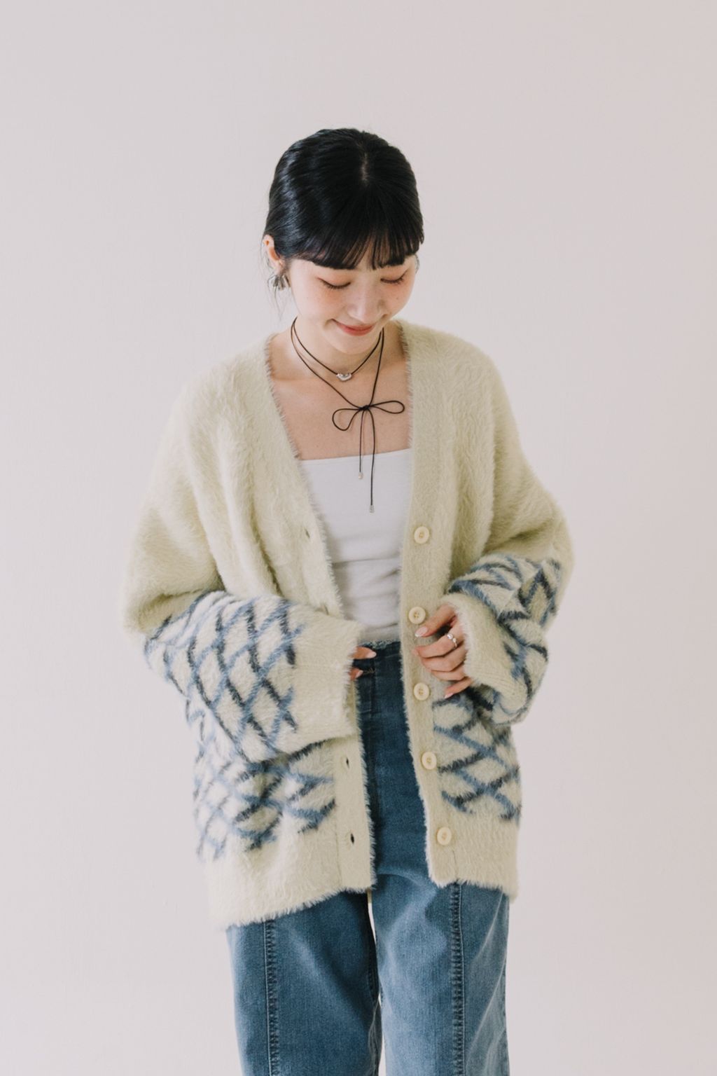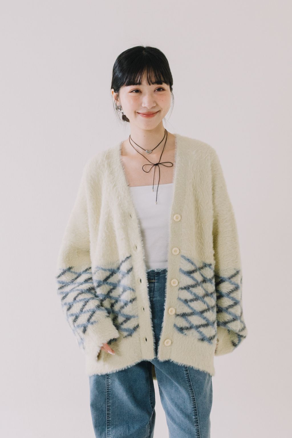 推!小眾品牌!菱格紋毛絨針織上衣