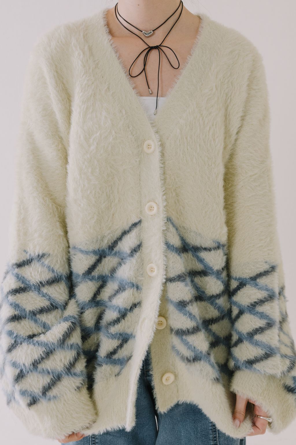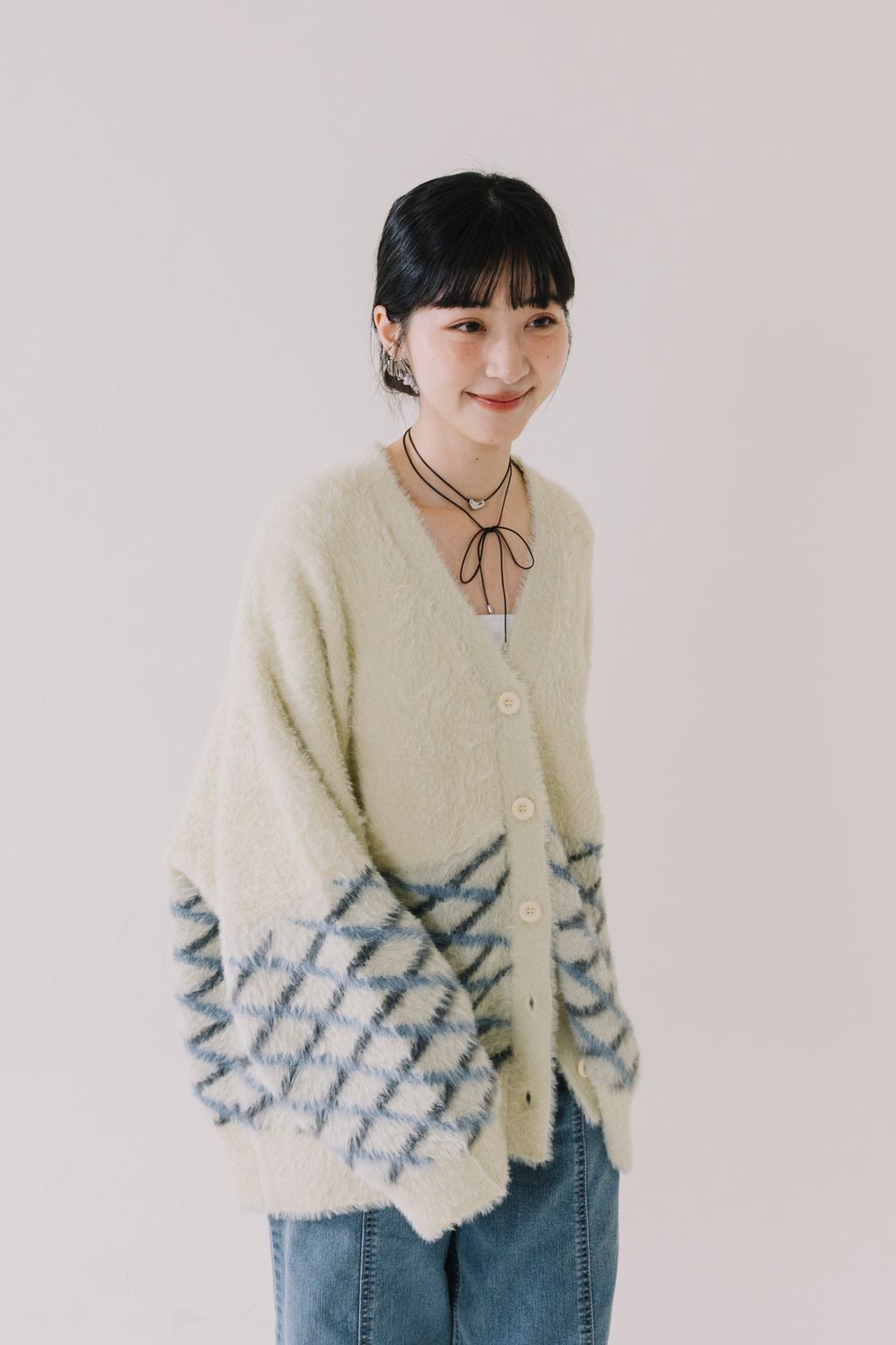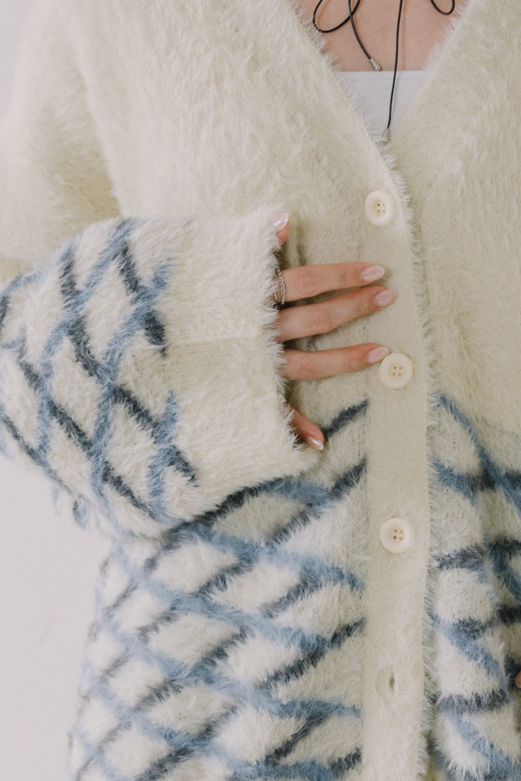 ✿ 上半部採象牙素面色 ✸ 下半部則採藍灰色菱格間隔設計