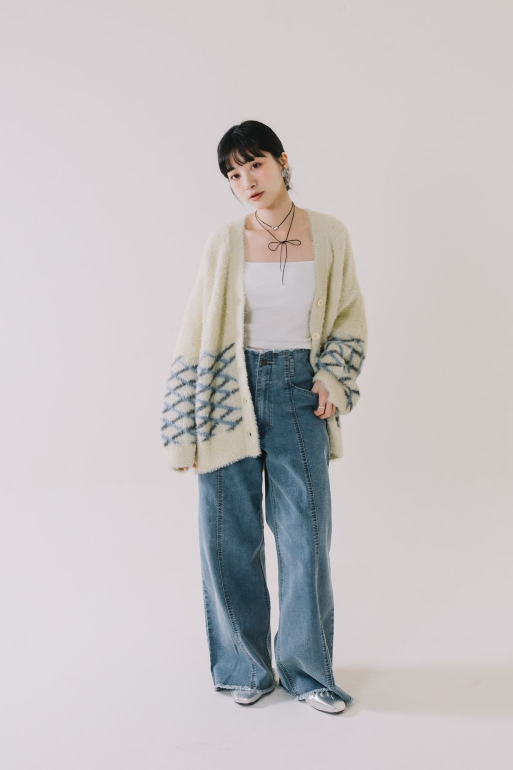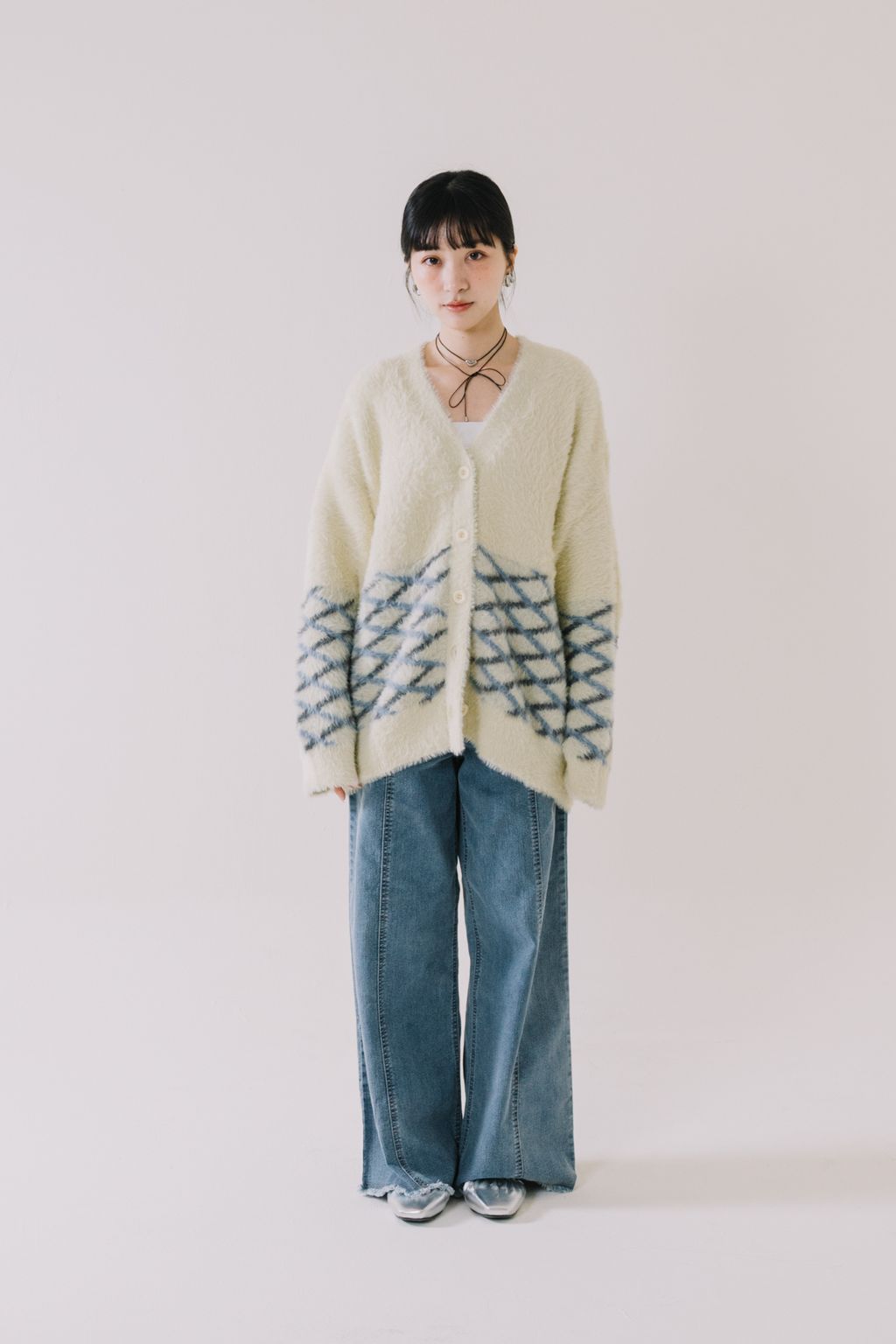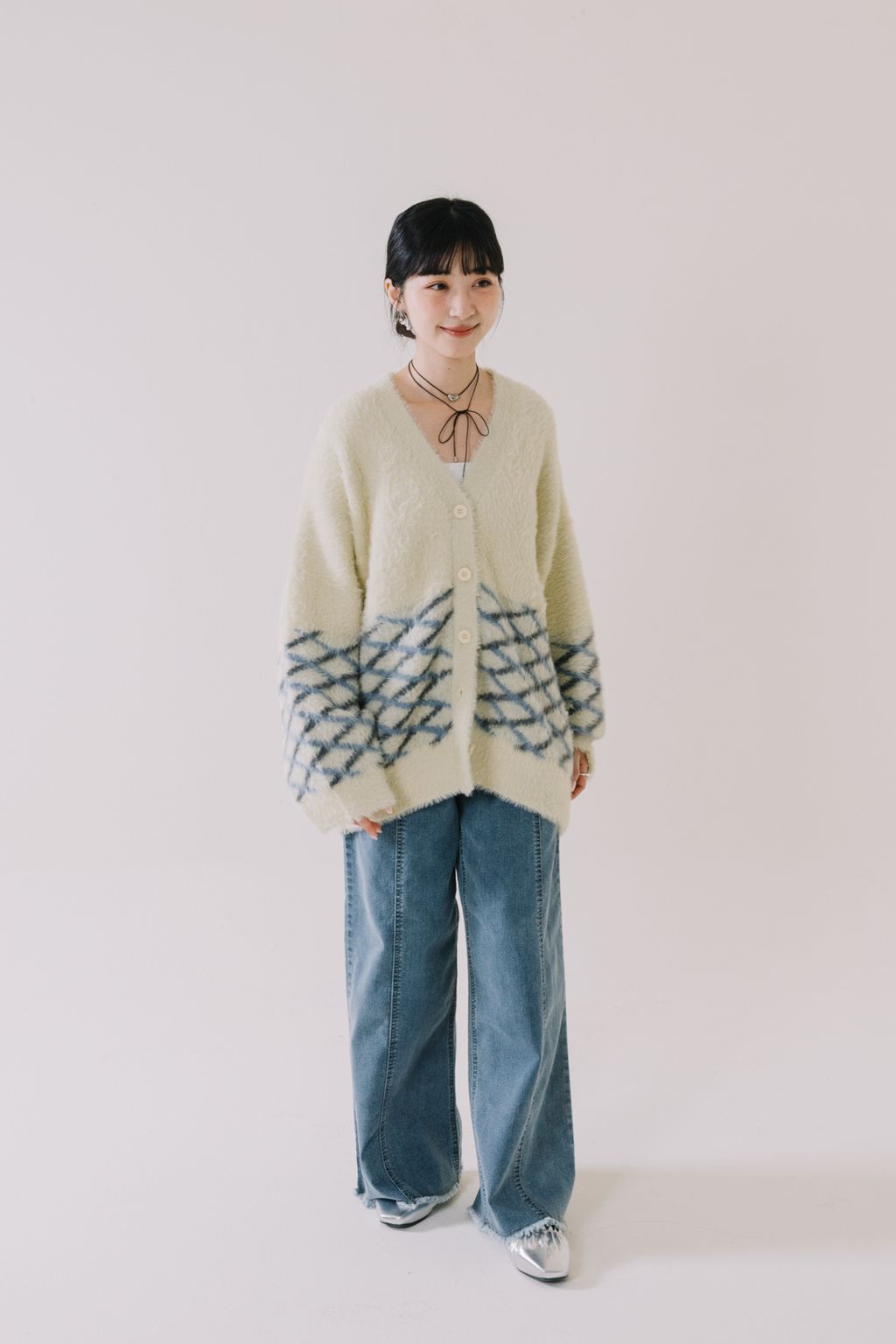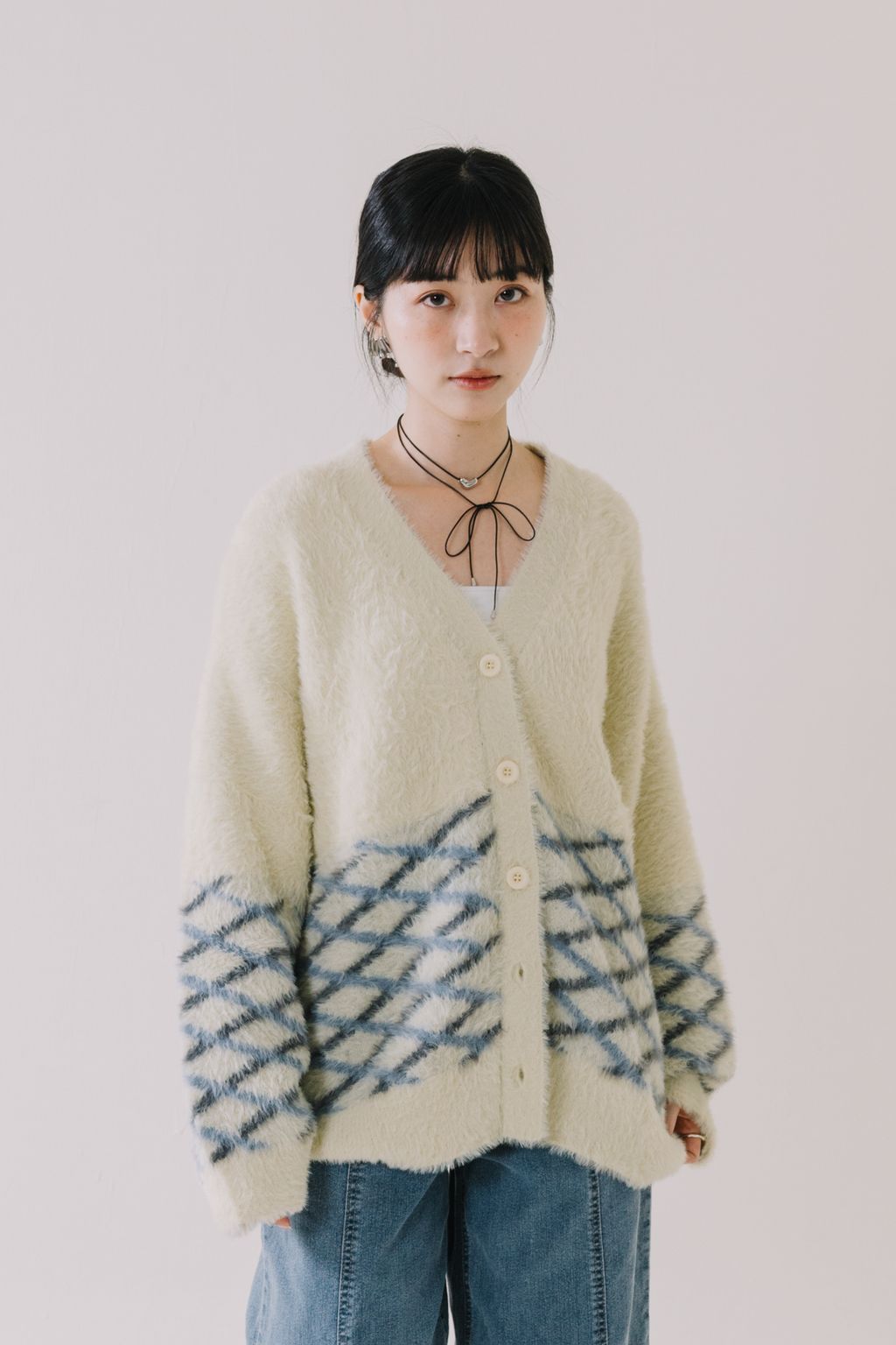 ✿ 上半部採象牙素面色 ✸ 下半部則採藍灰色菱格間隔設計