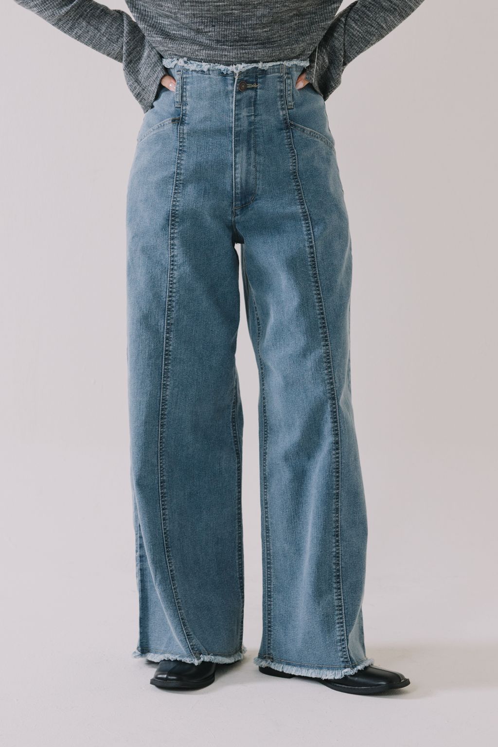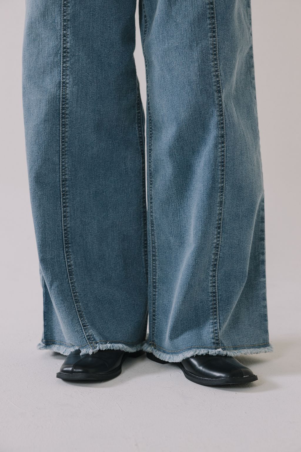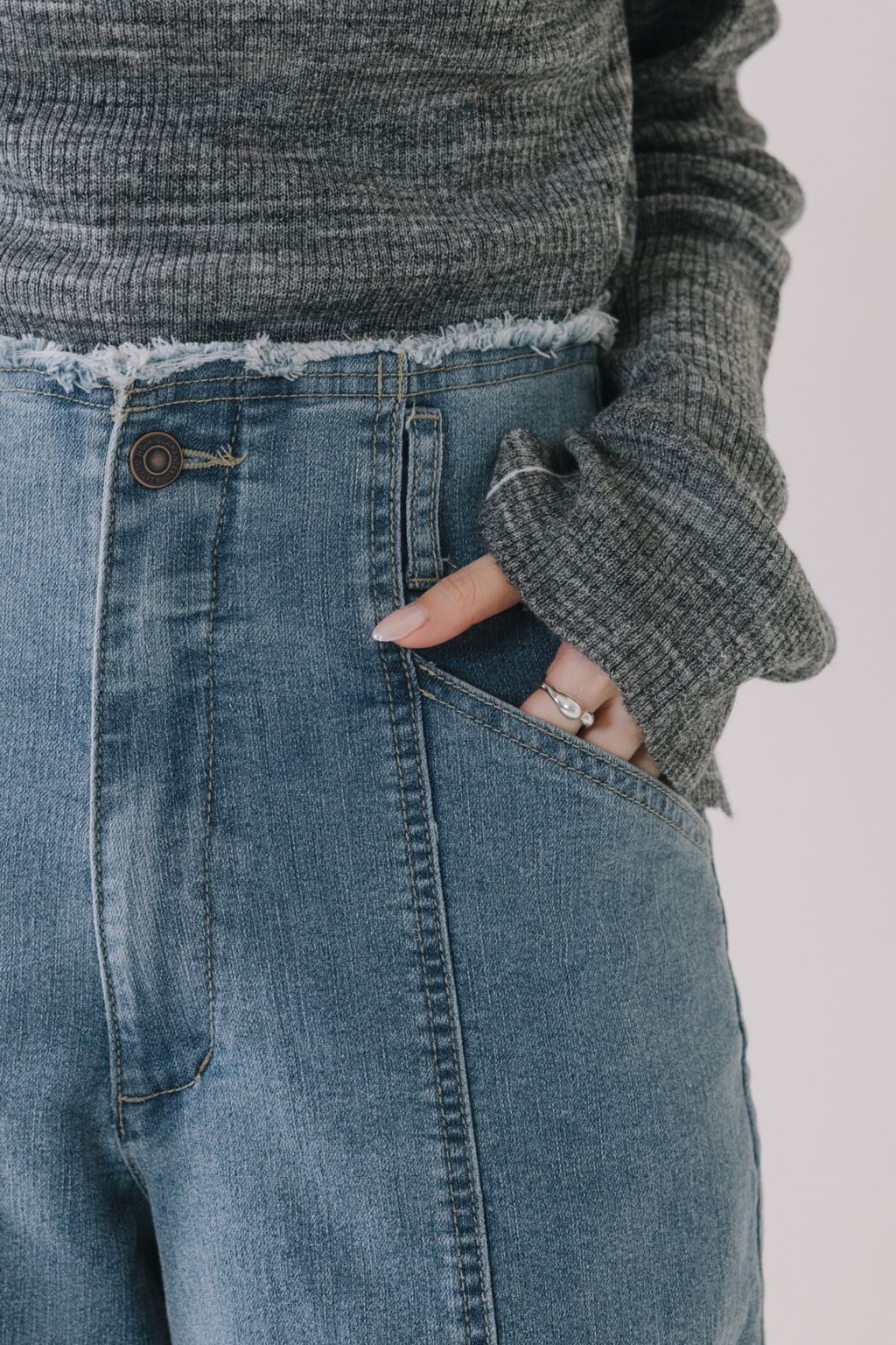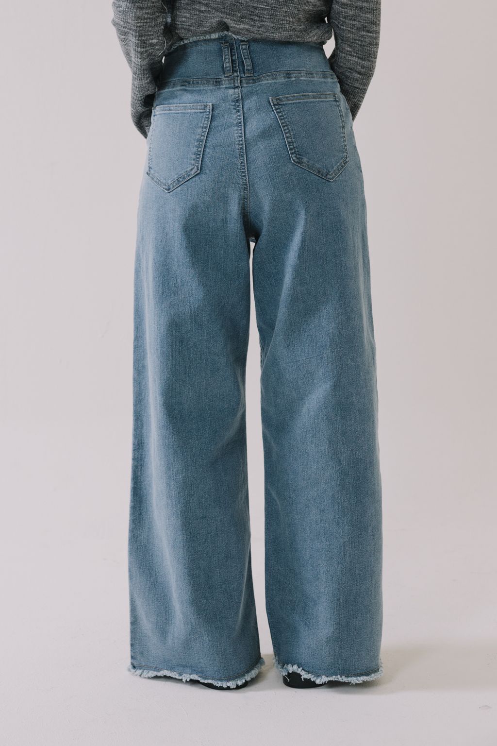 流蘇造型彈性直筒牛仔褲(淺藍)
