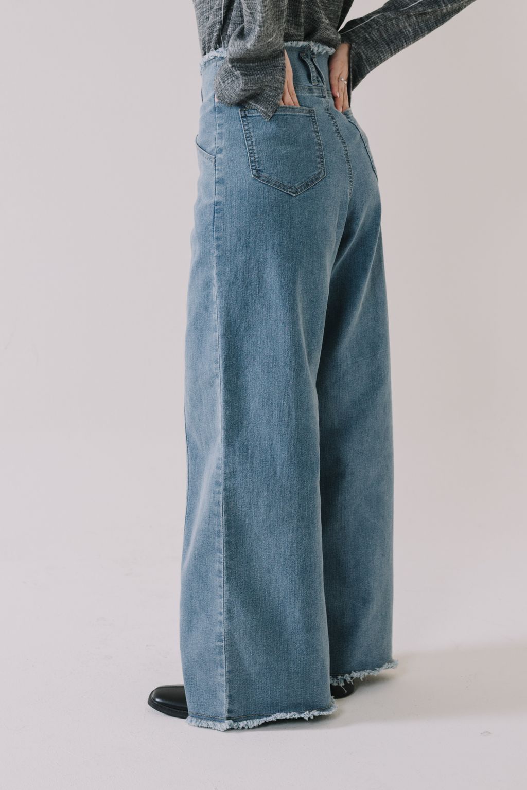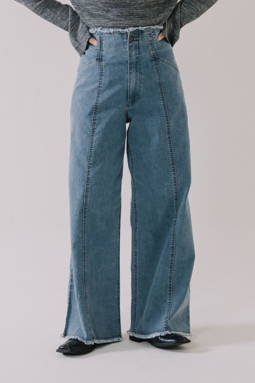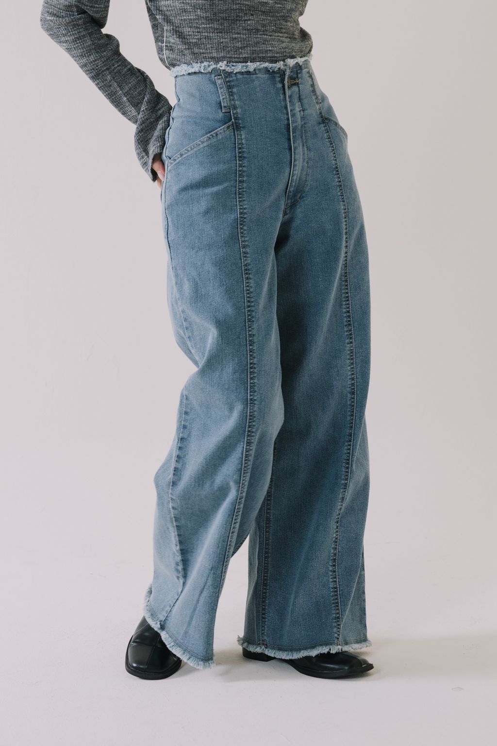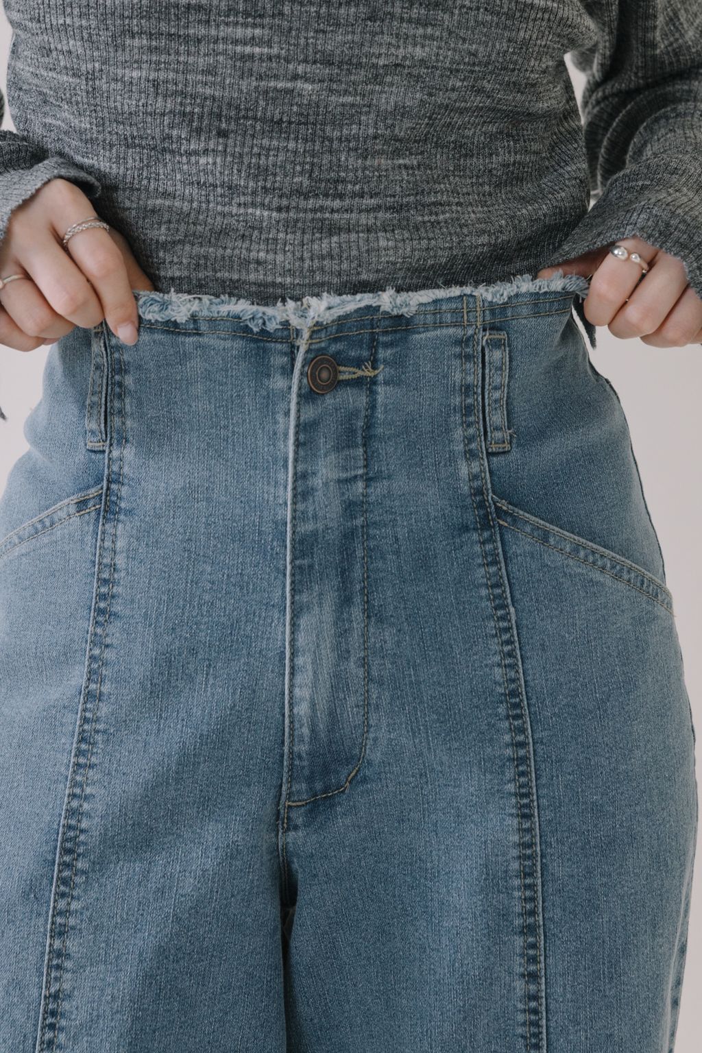 流蘇造型彈性直筒牛仔褲(淺藍)