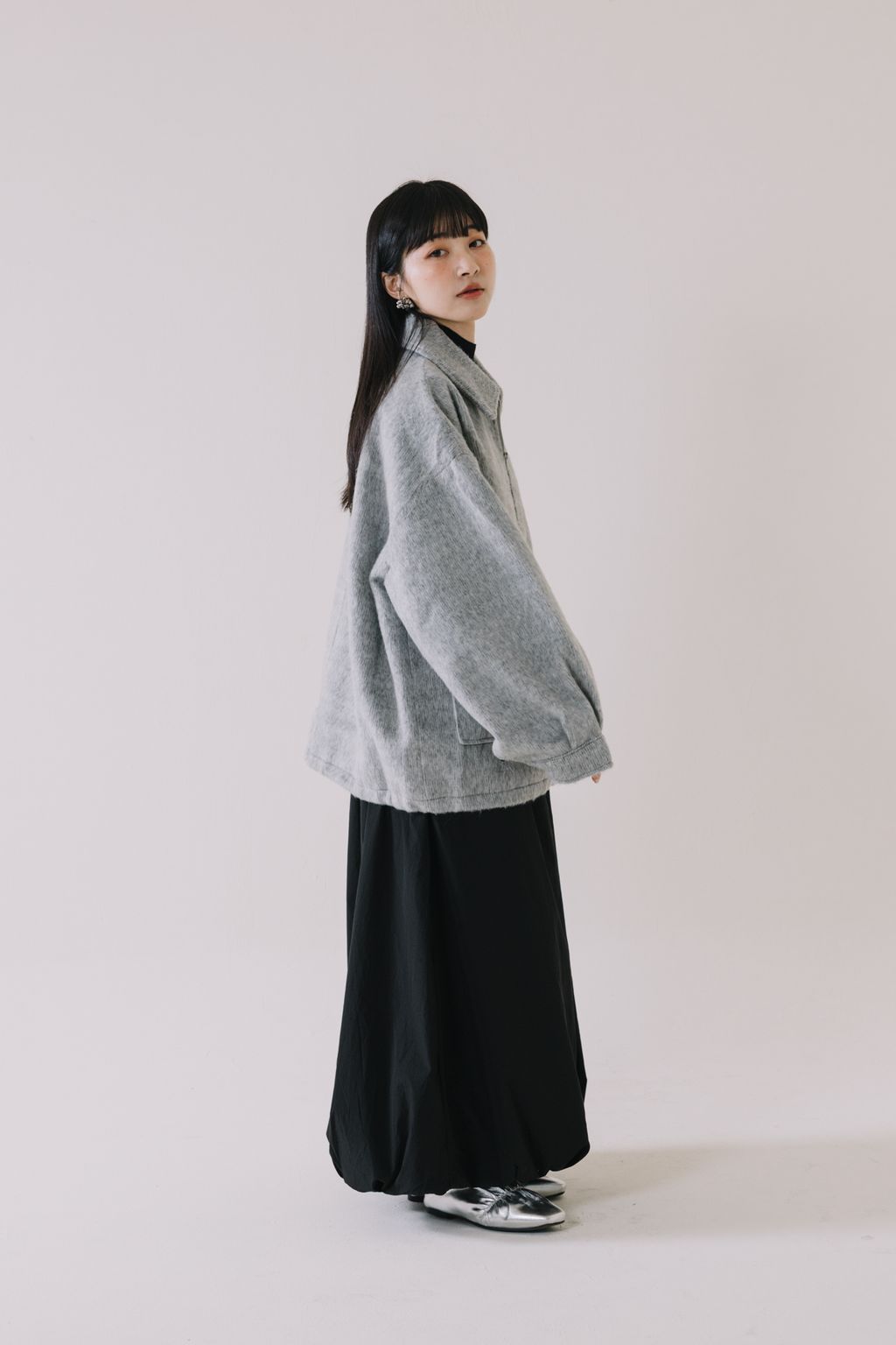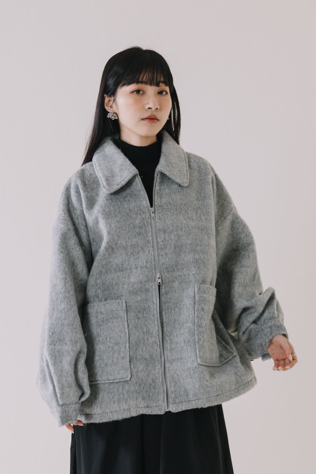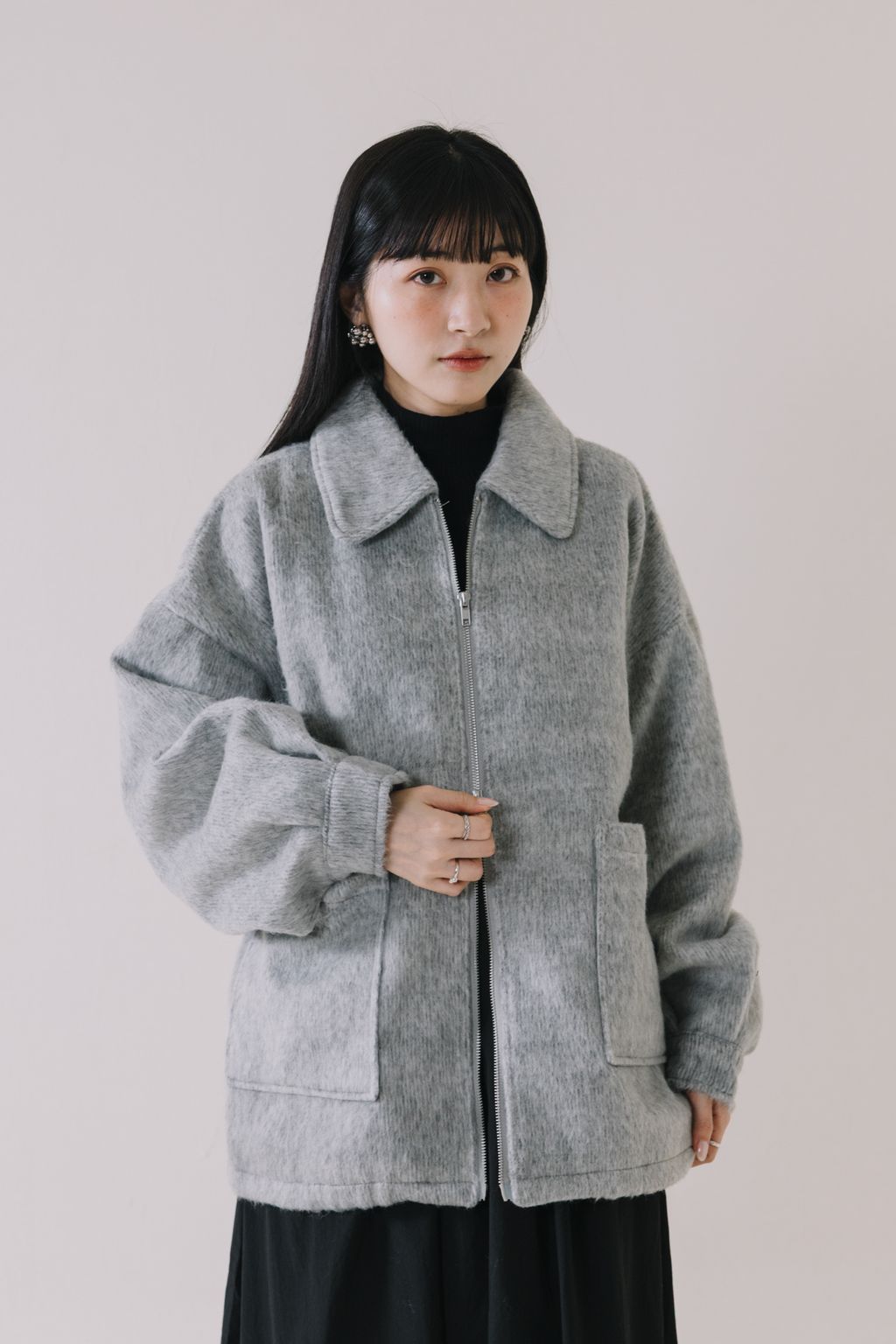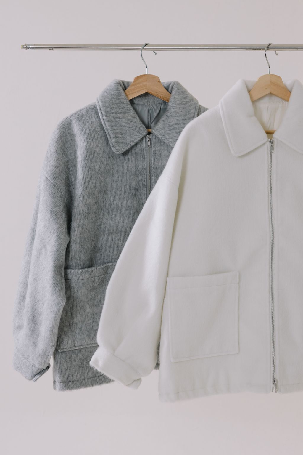 (限量)率性毛絨雙拉鍊外套(灰)