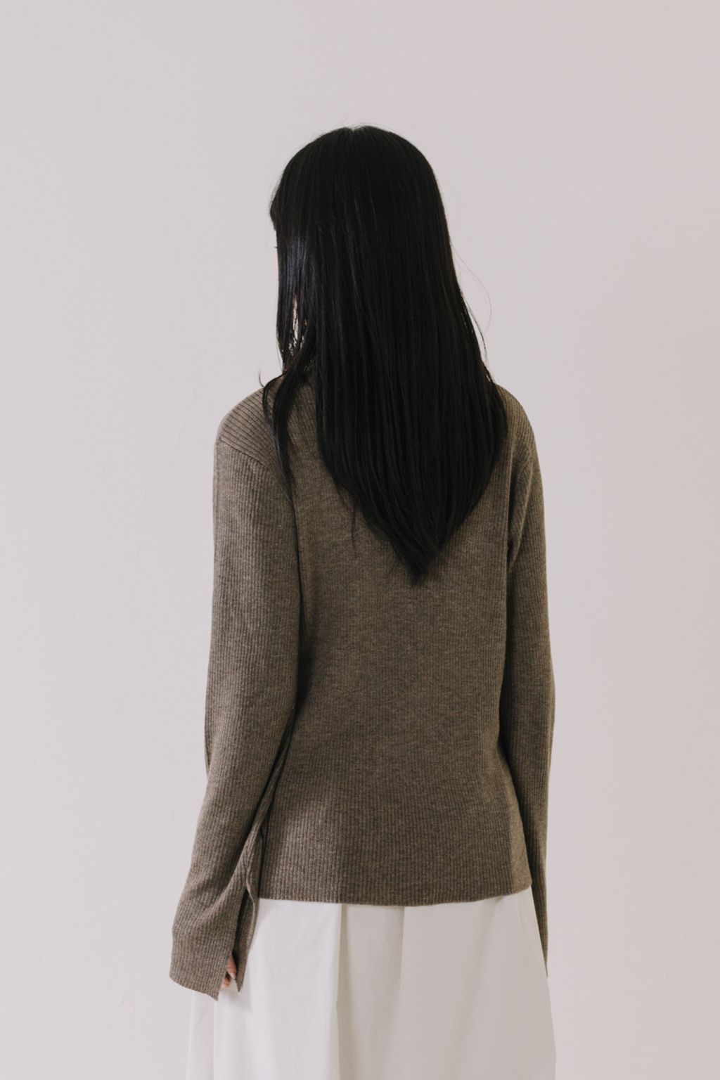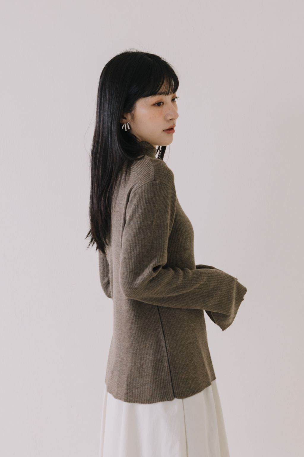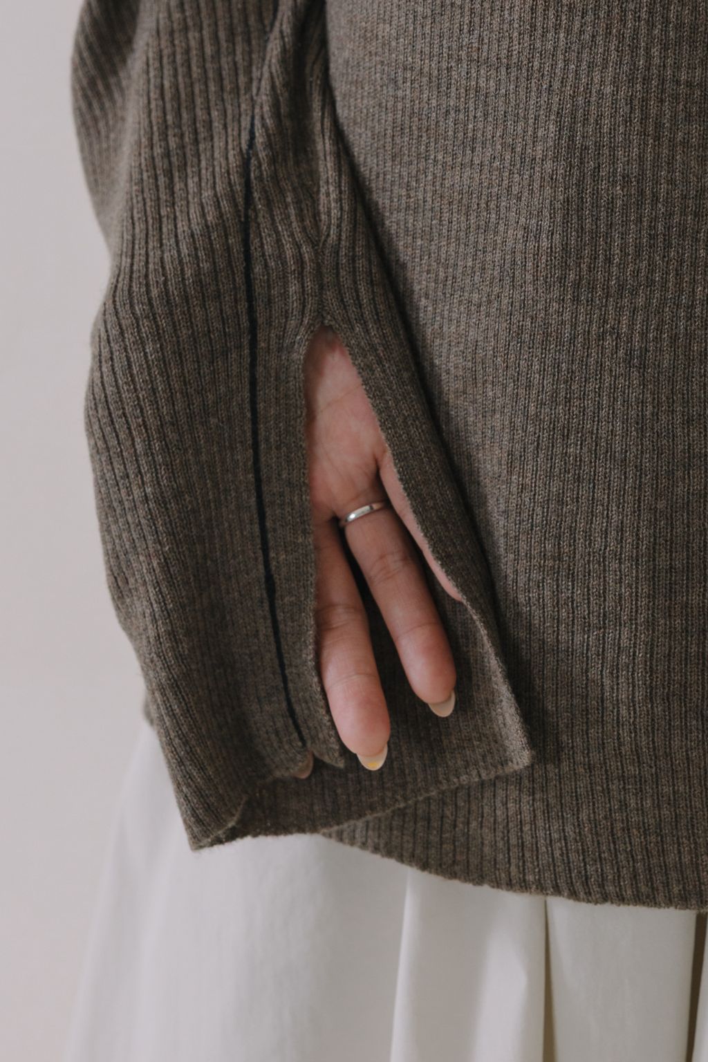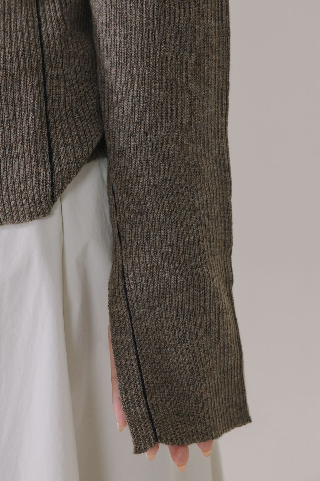 (限量)袖口開衩撞色滾邊針織上衣(咖)