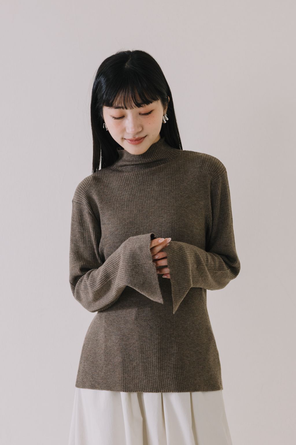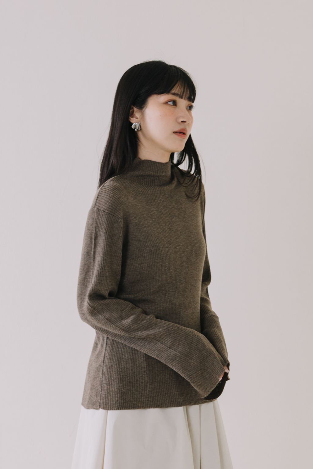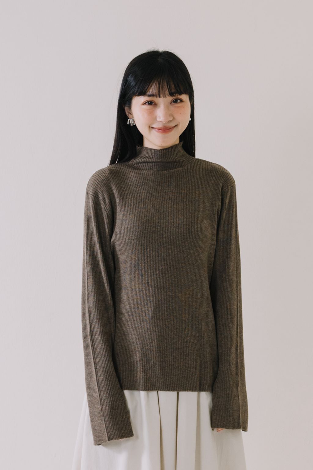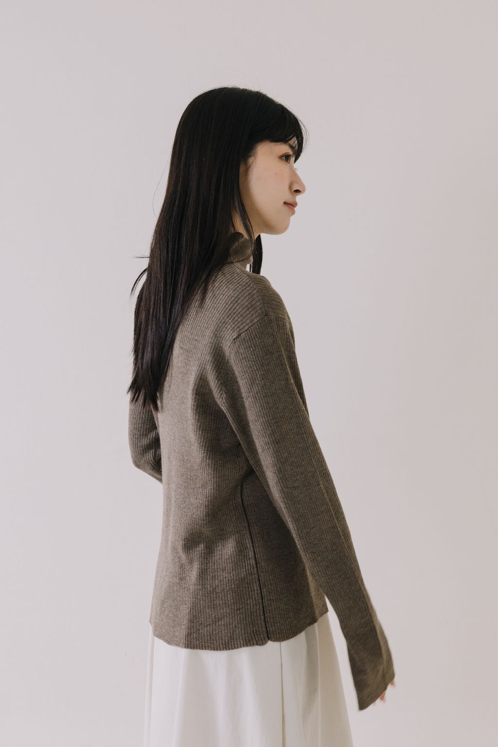 (限量)袖口開衩撞色滾邊針織上衣(咖)