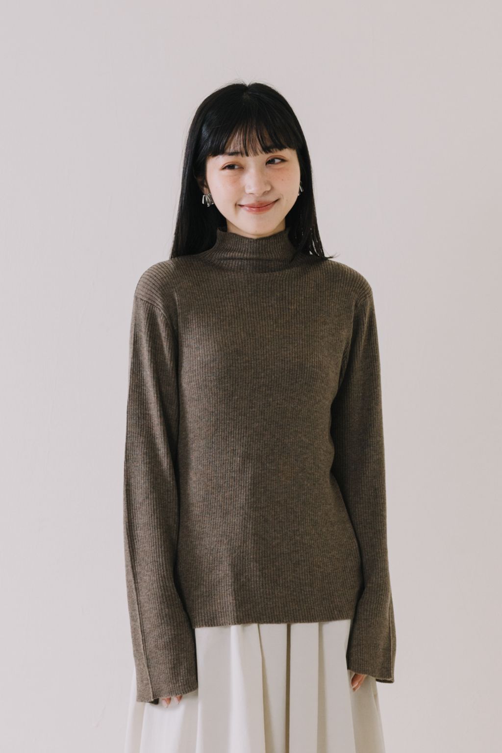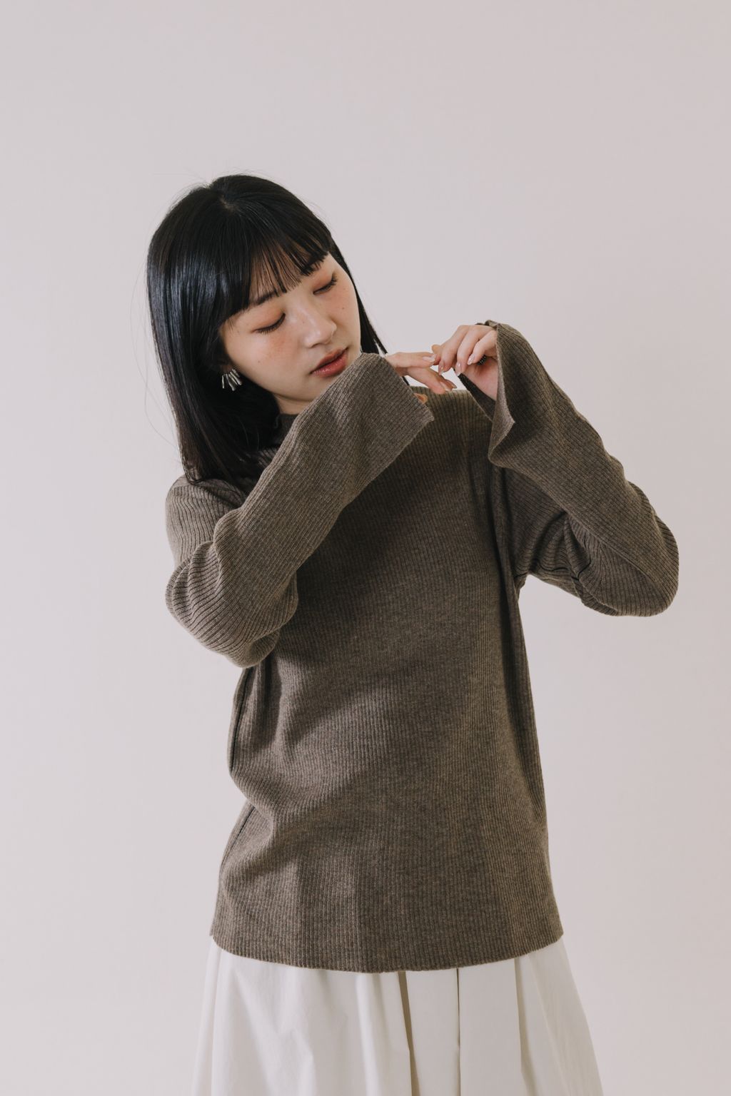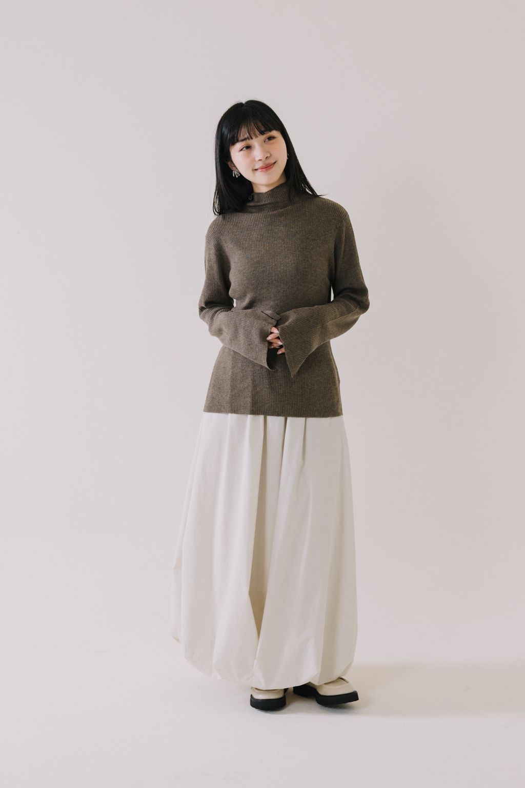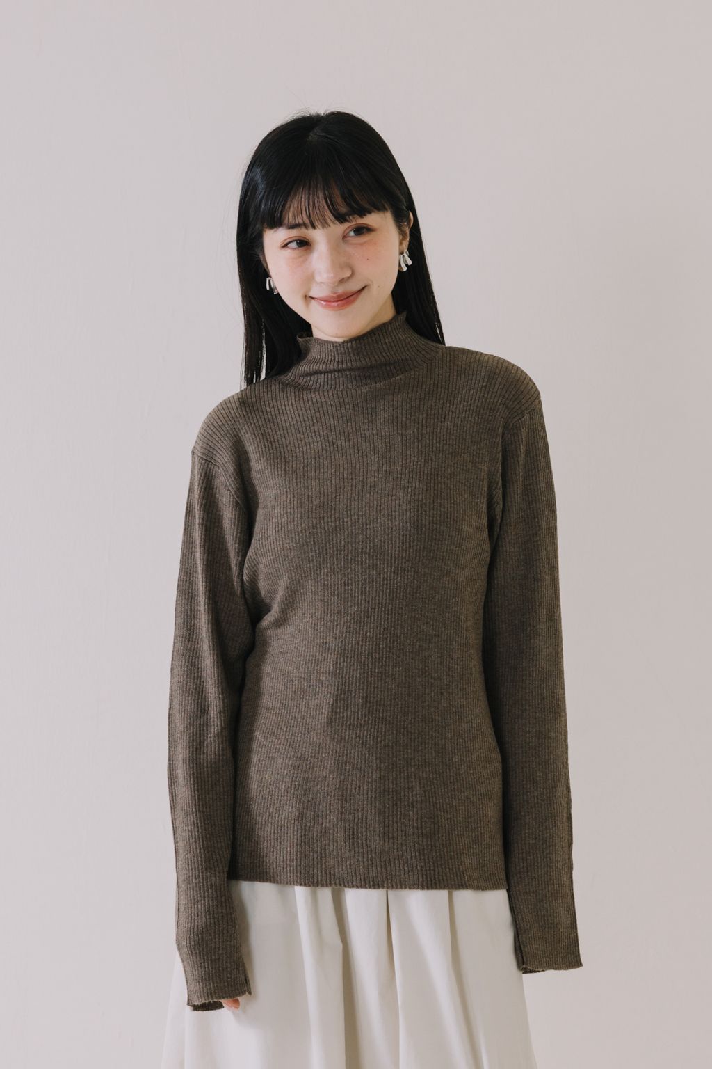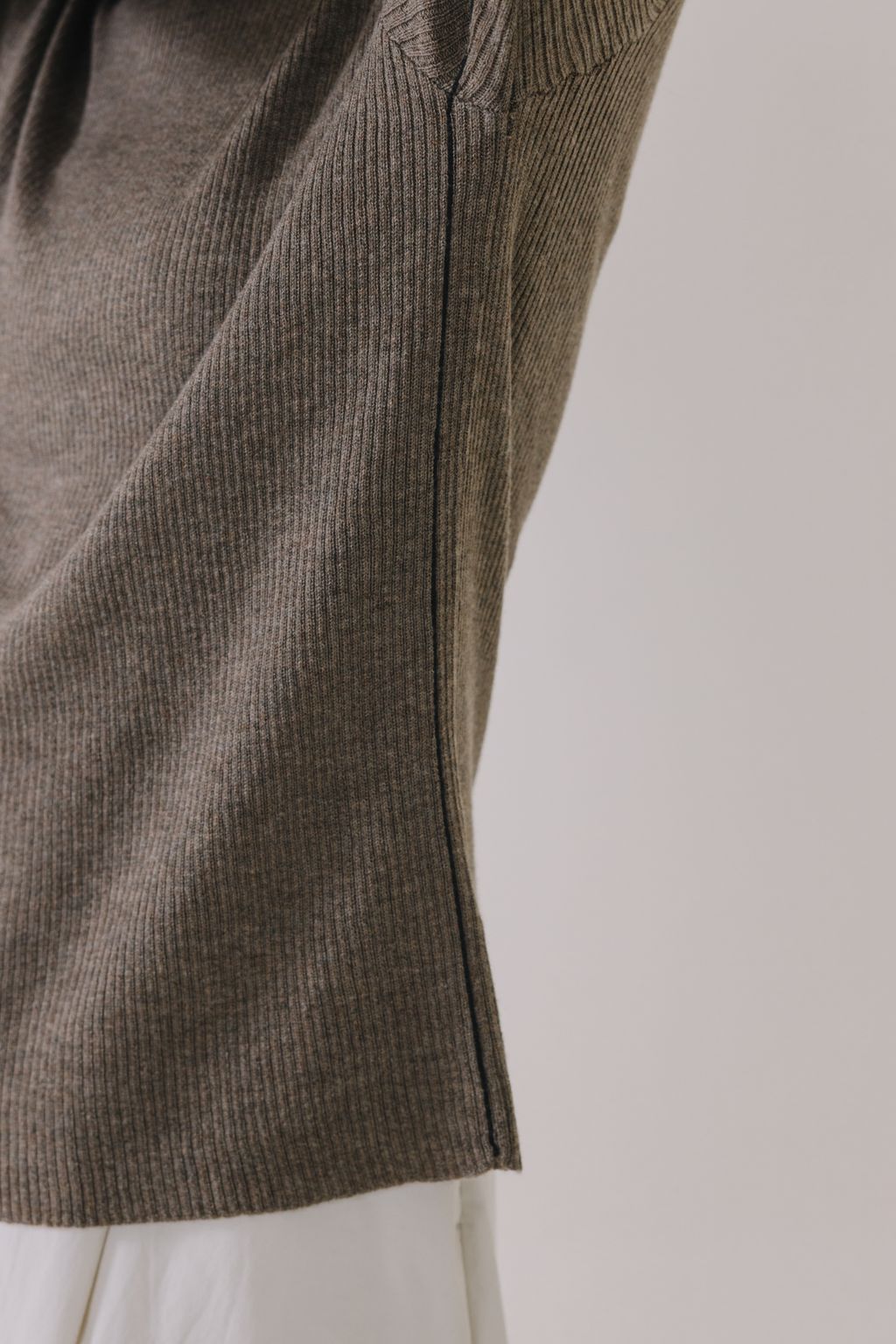 (限量)袖口開衩撞色滾邊針織上衣(咖)