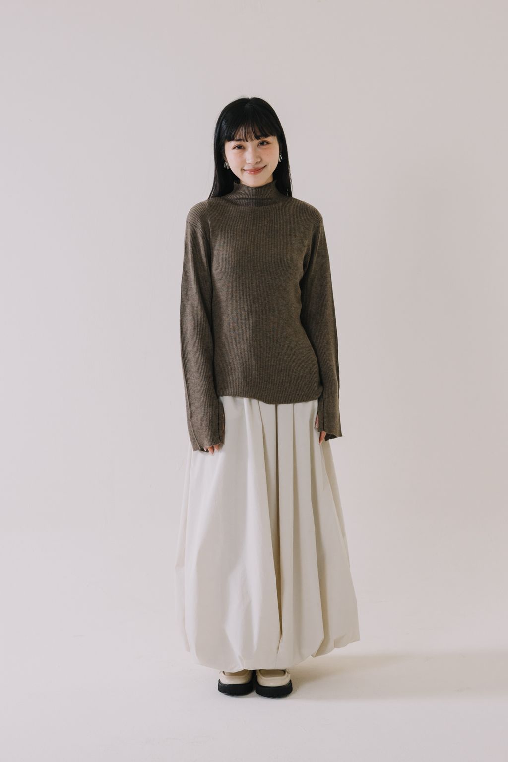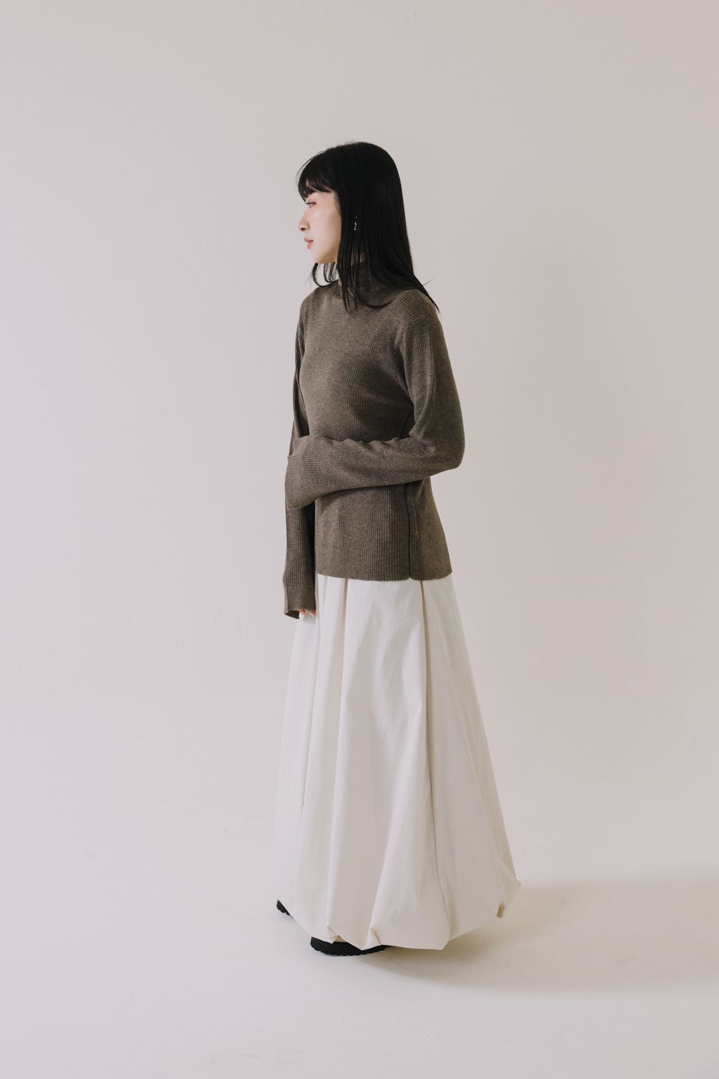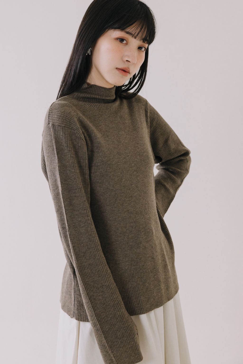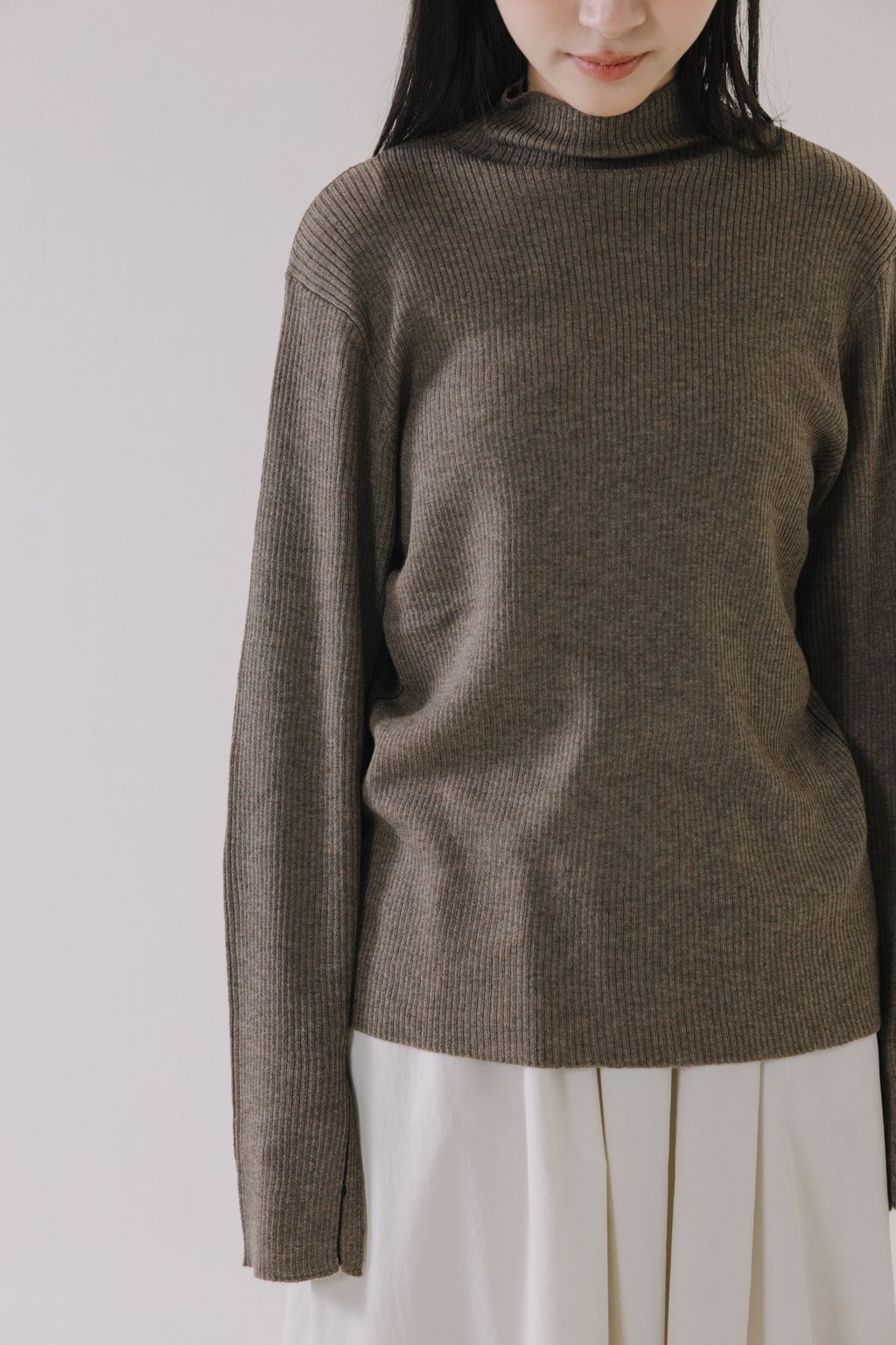(限量)袖口開衩撞色滾邊針織上衣(咖)