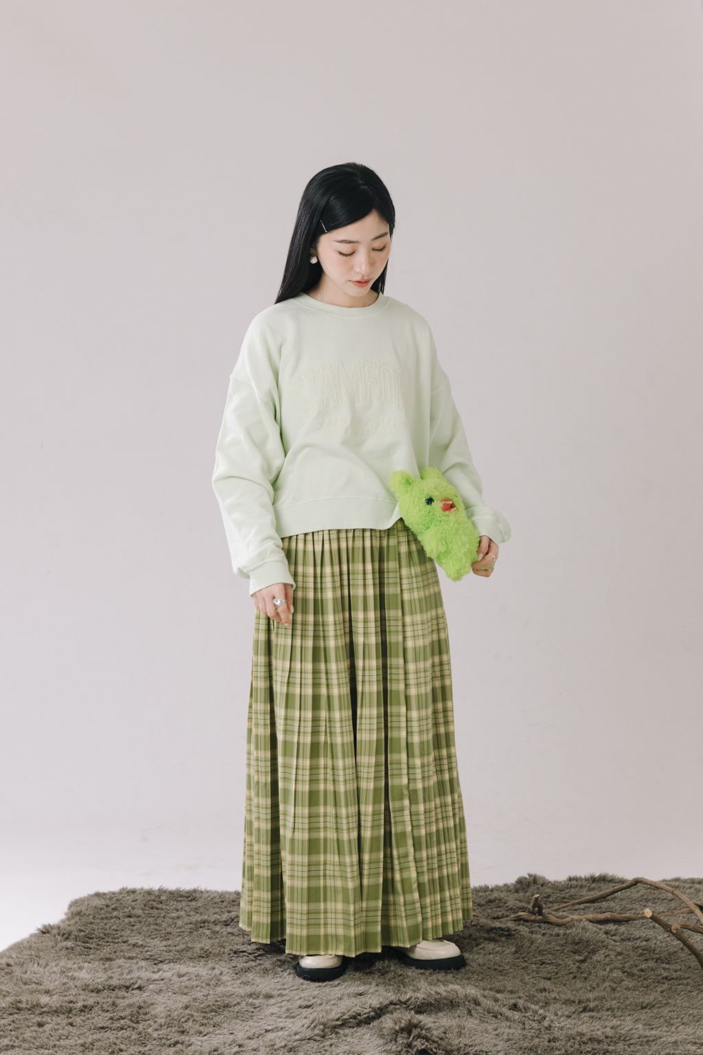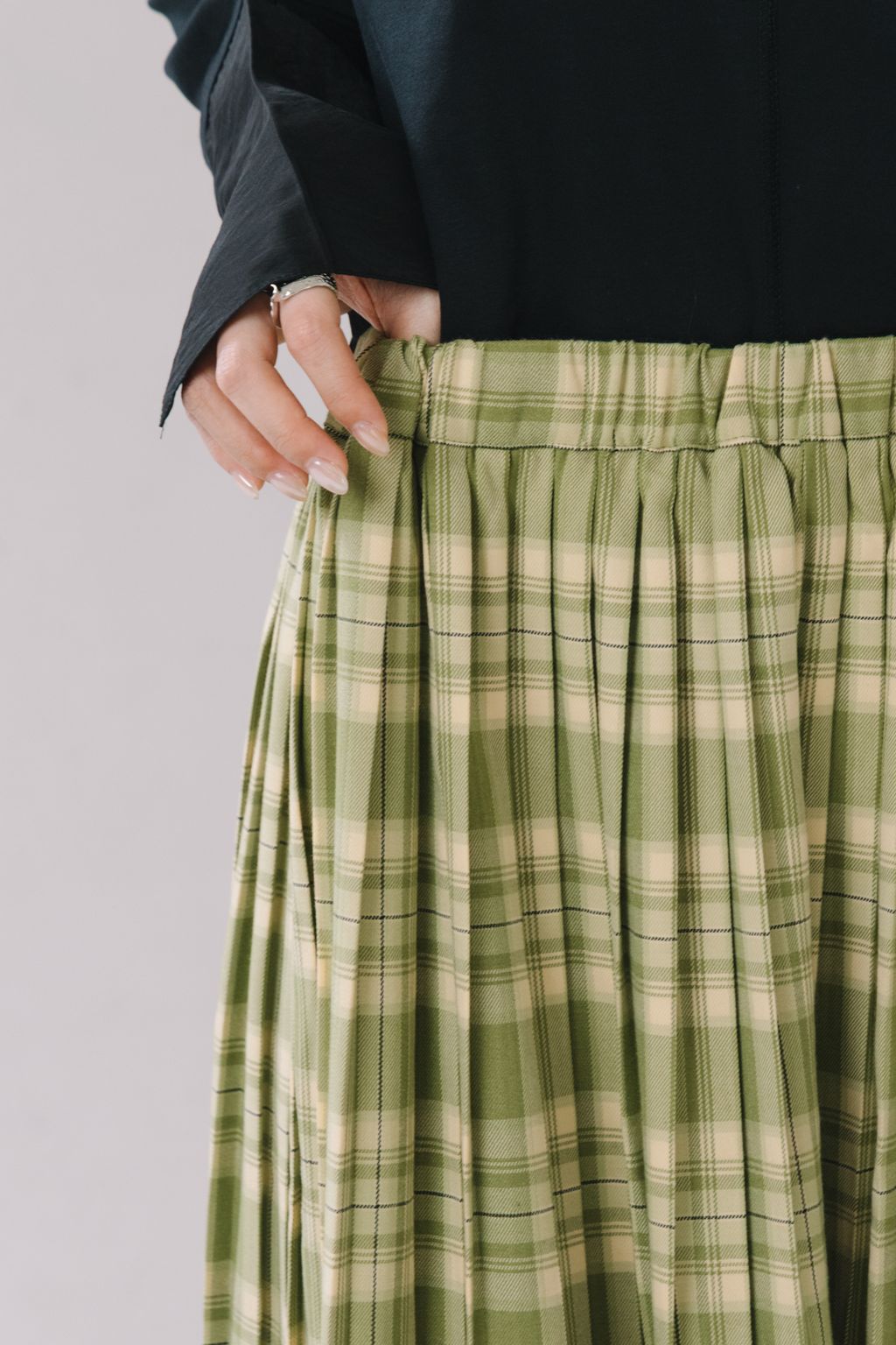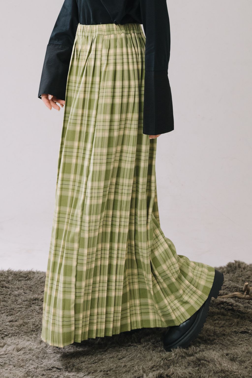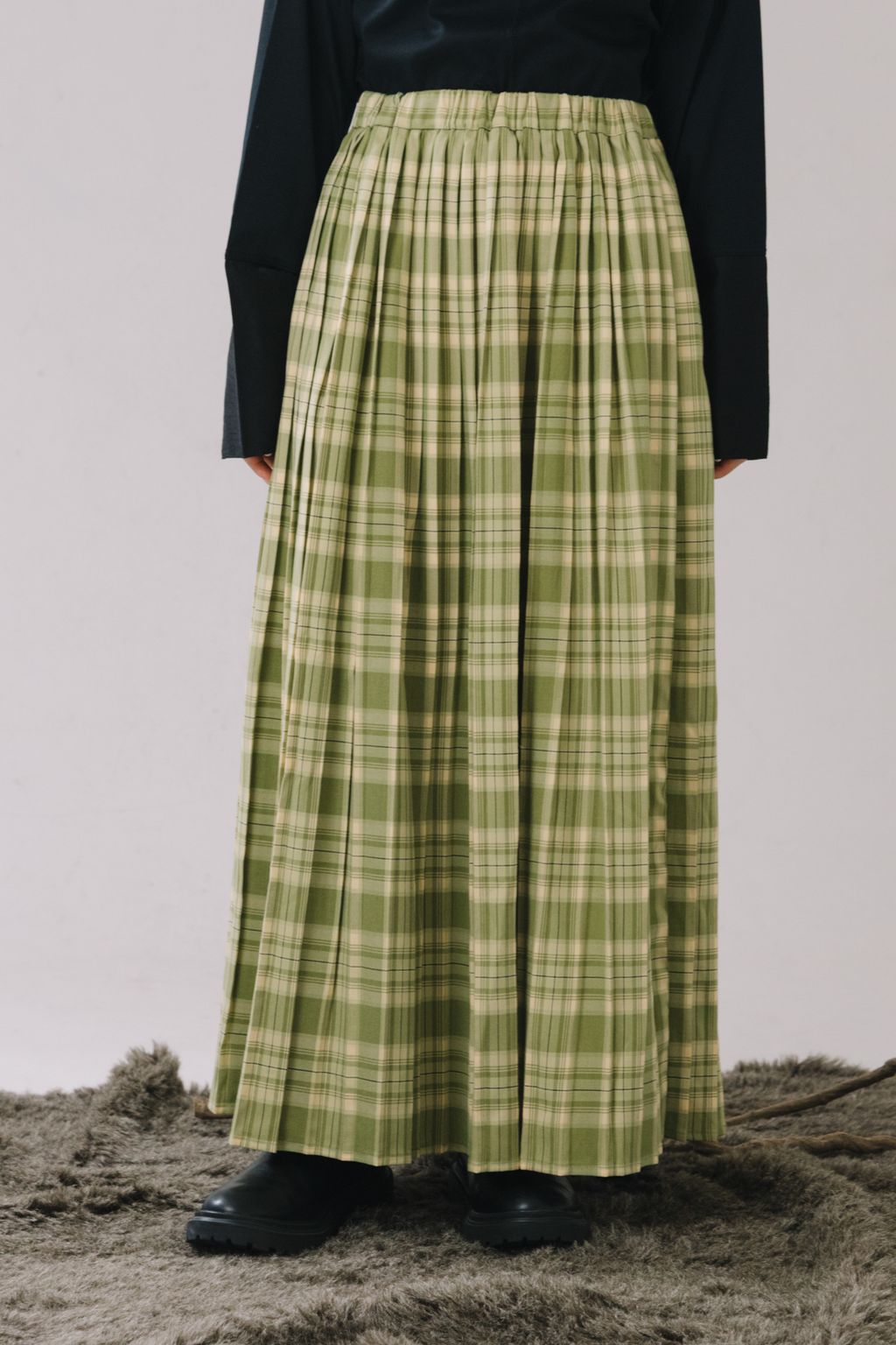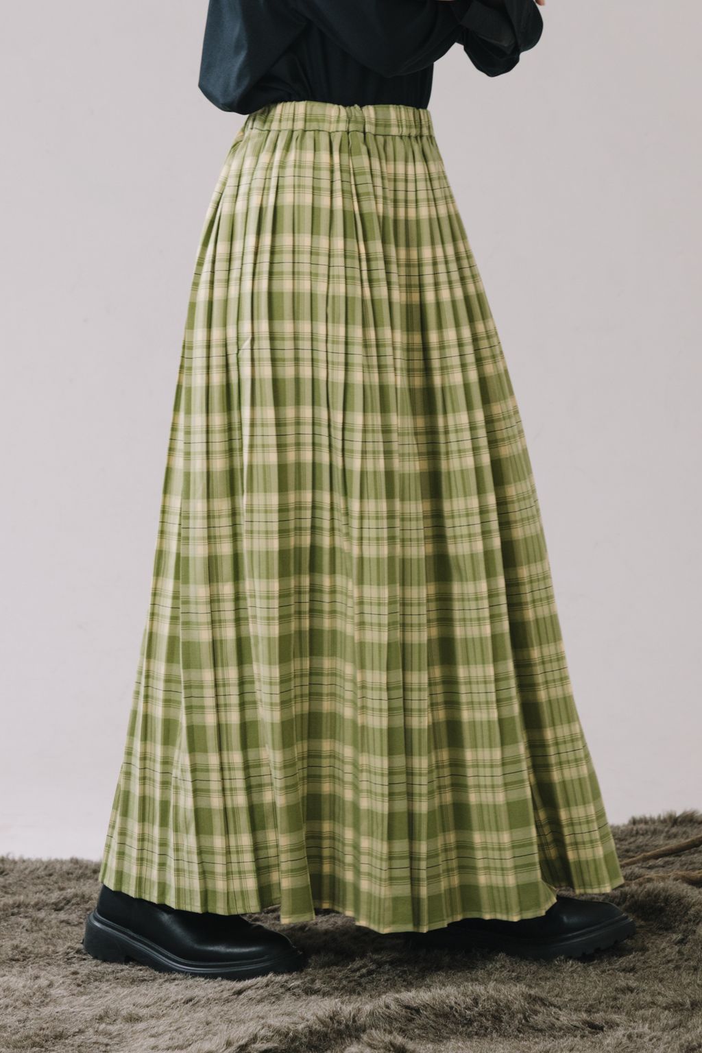 復古感格紋百褶長裙(綠)