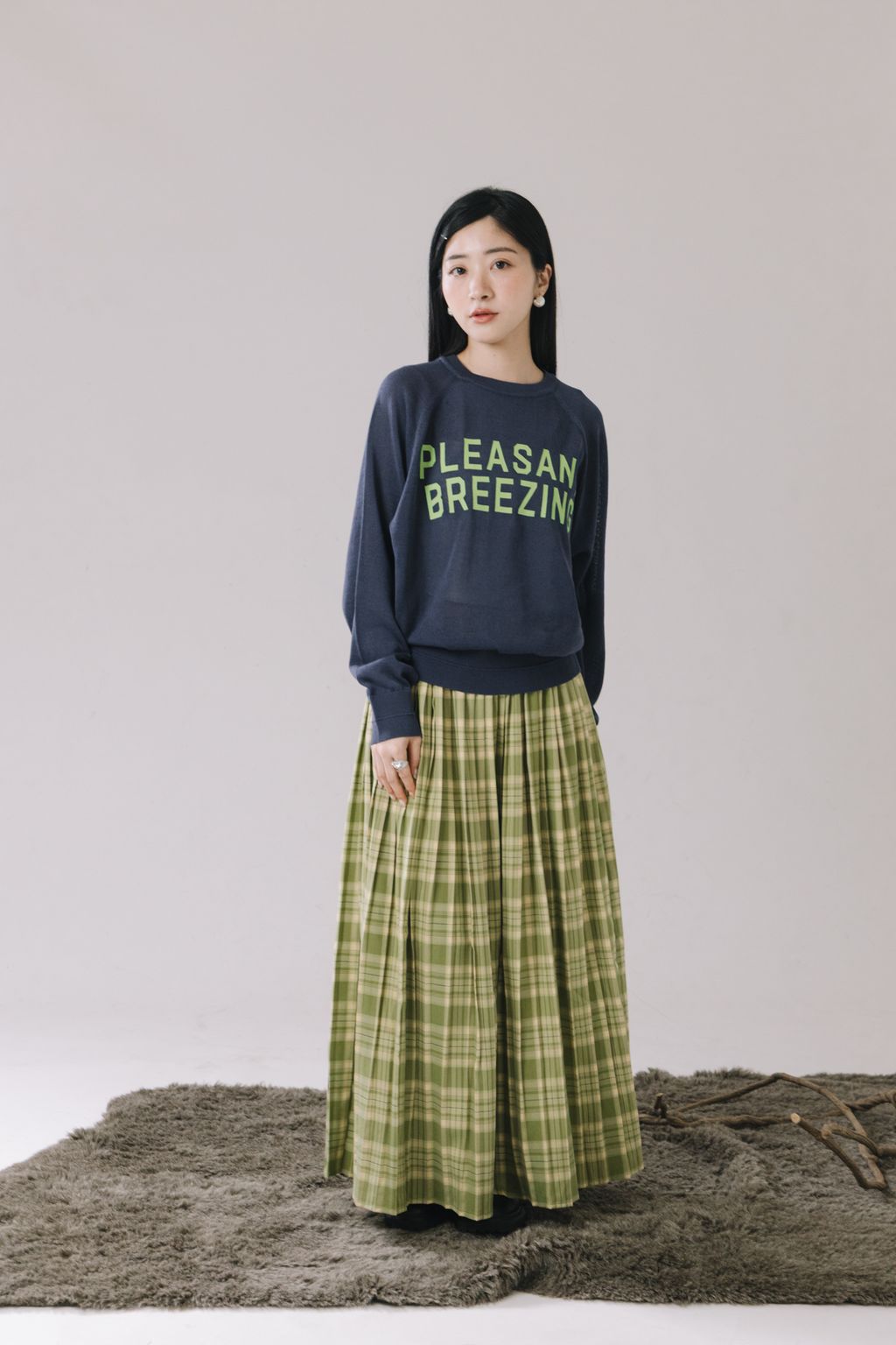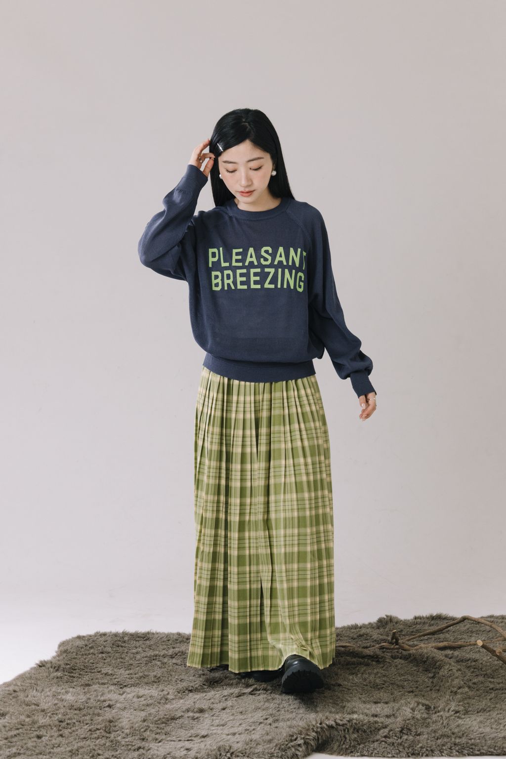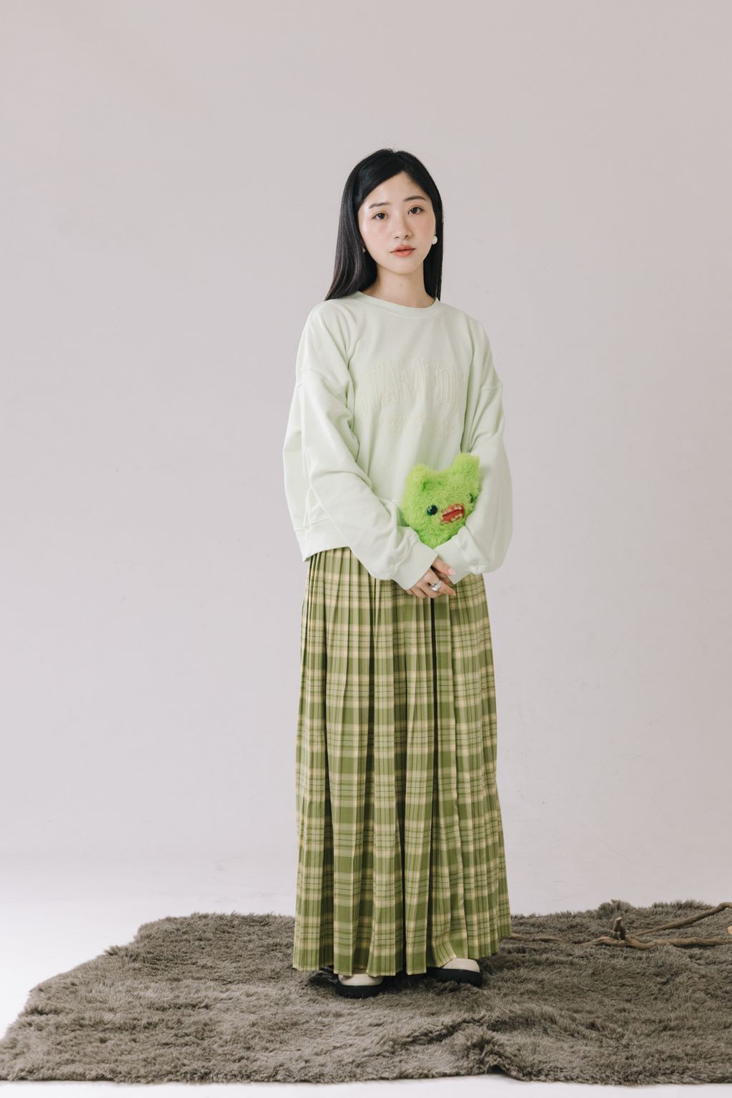 ✿ 百摺+格紋的設計 ✸ 整體優雅與活潑兼具