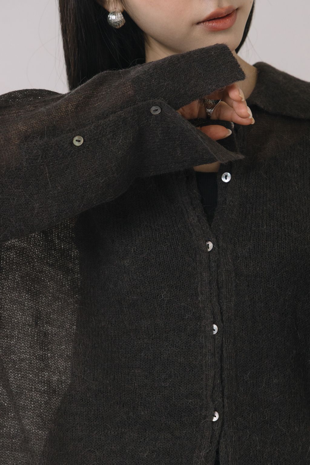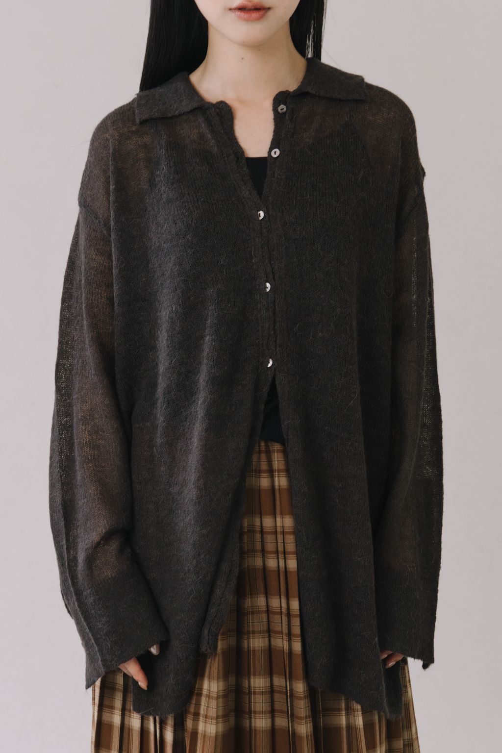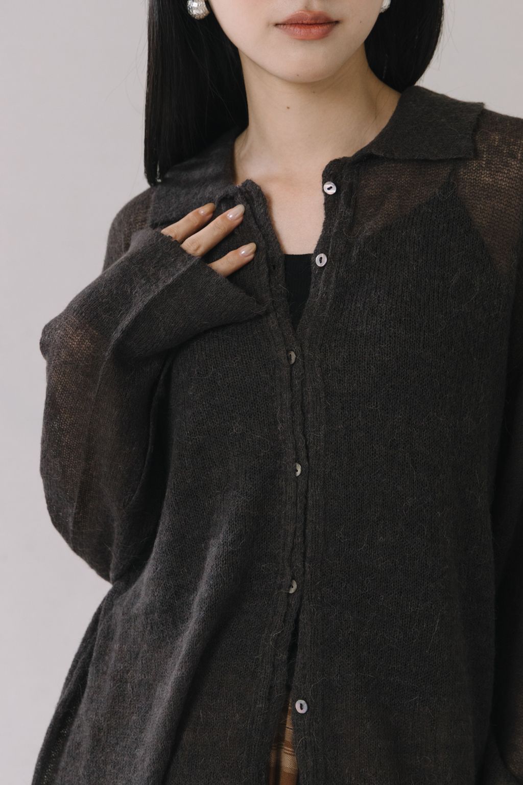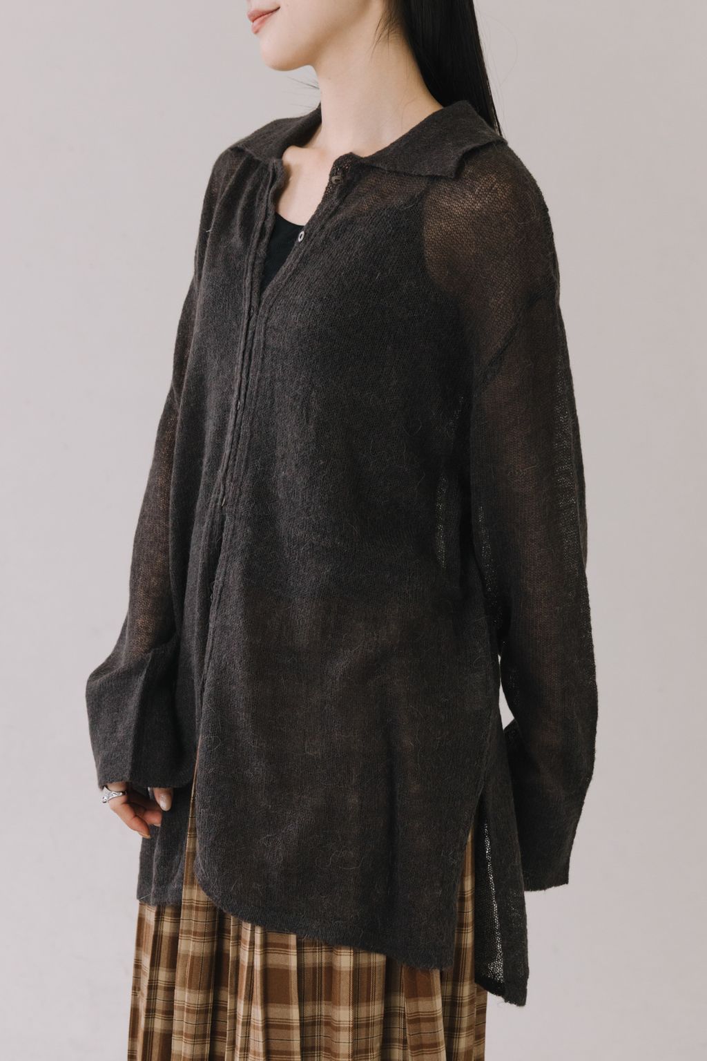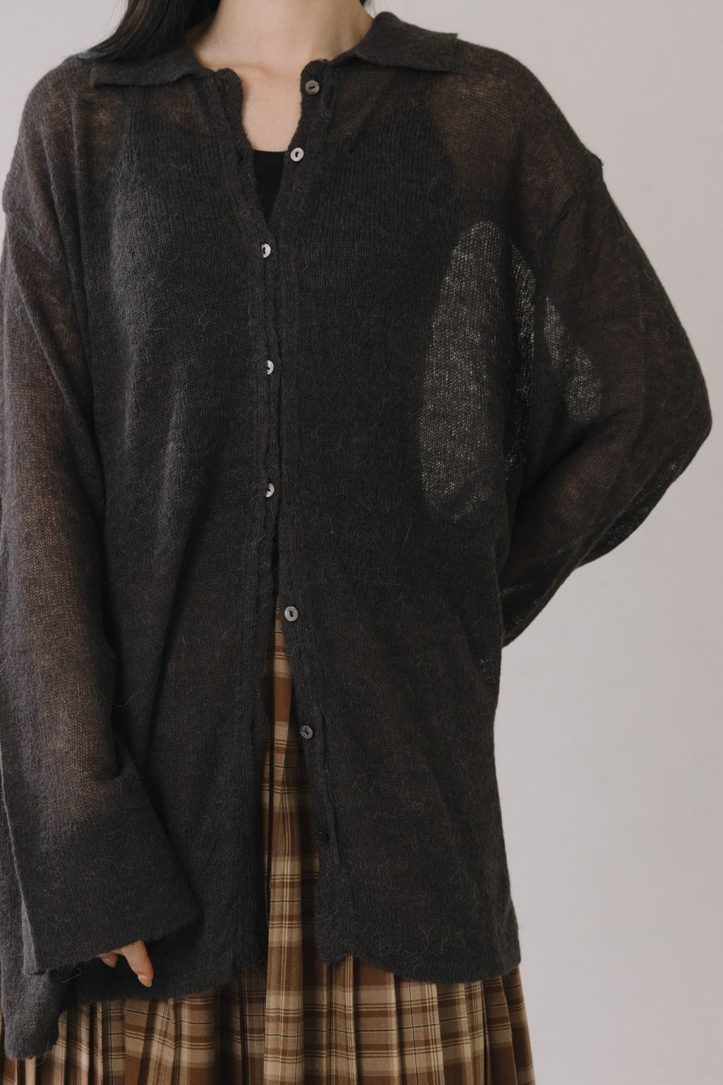 羊駝毛輕薄針織上衣(灰)