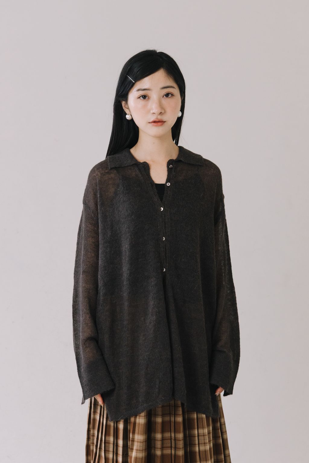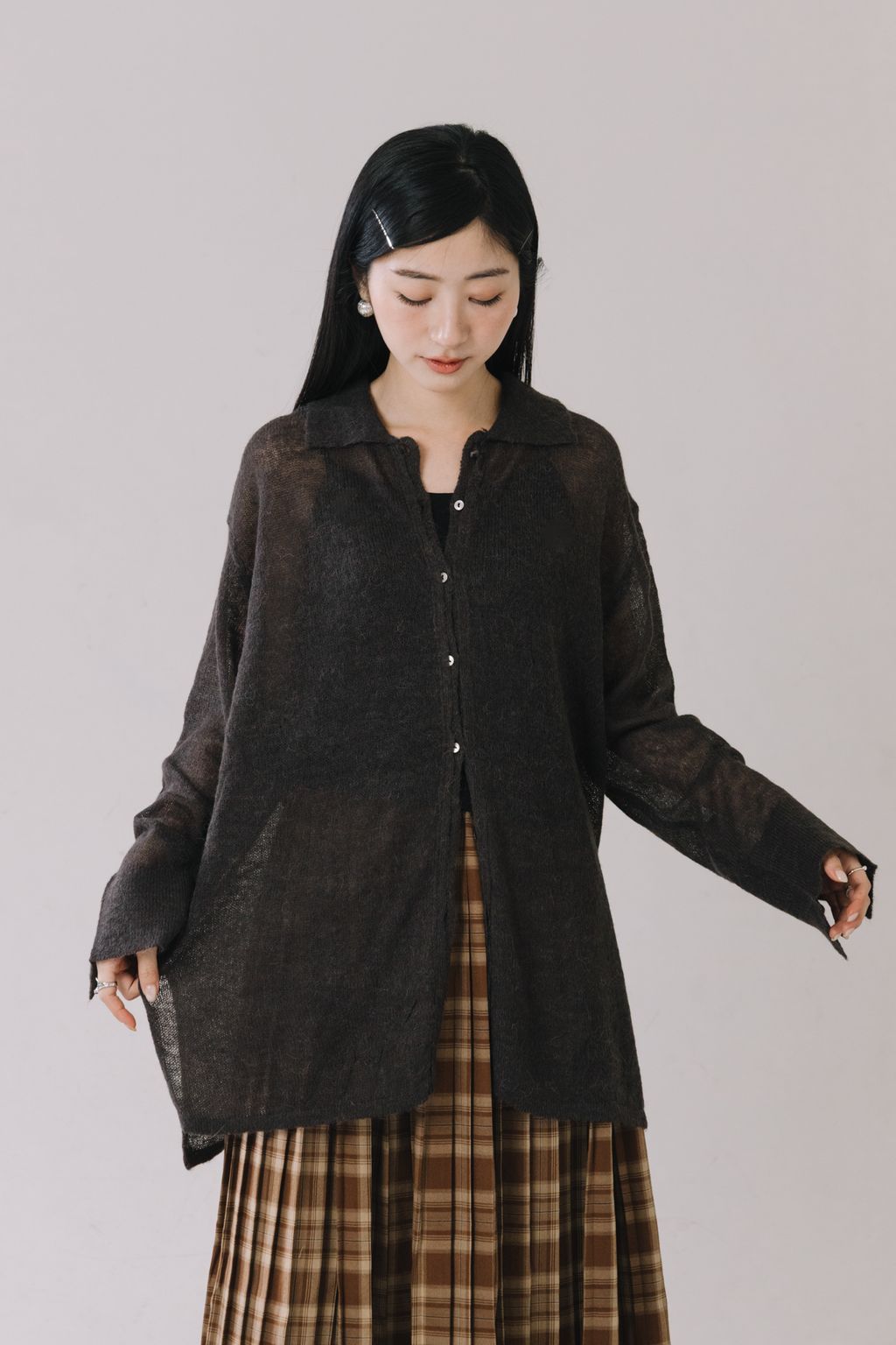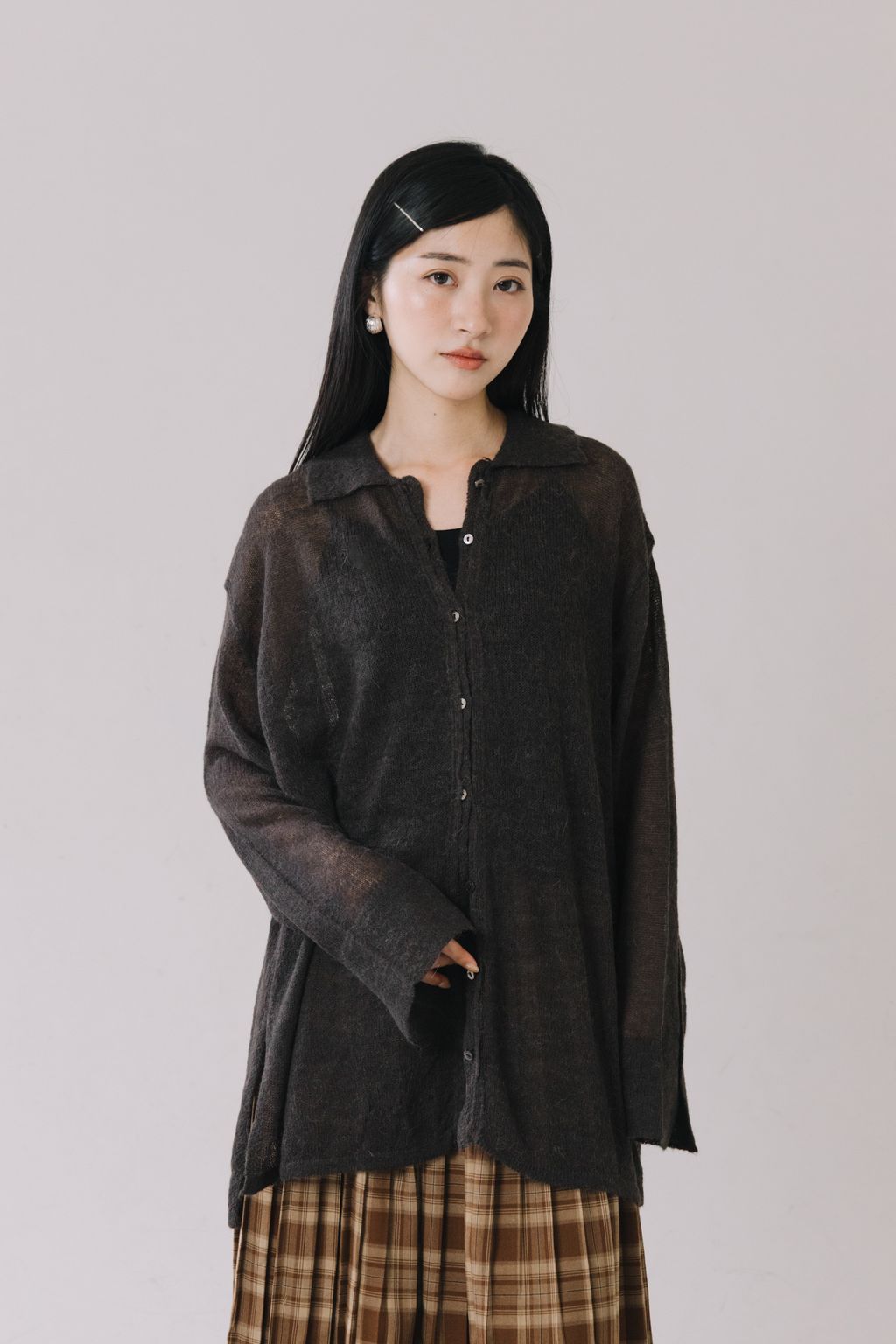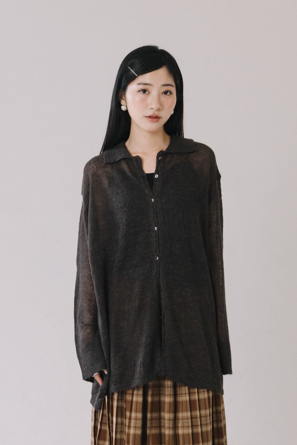 羊駝毛輕薄針織上衣(灰)