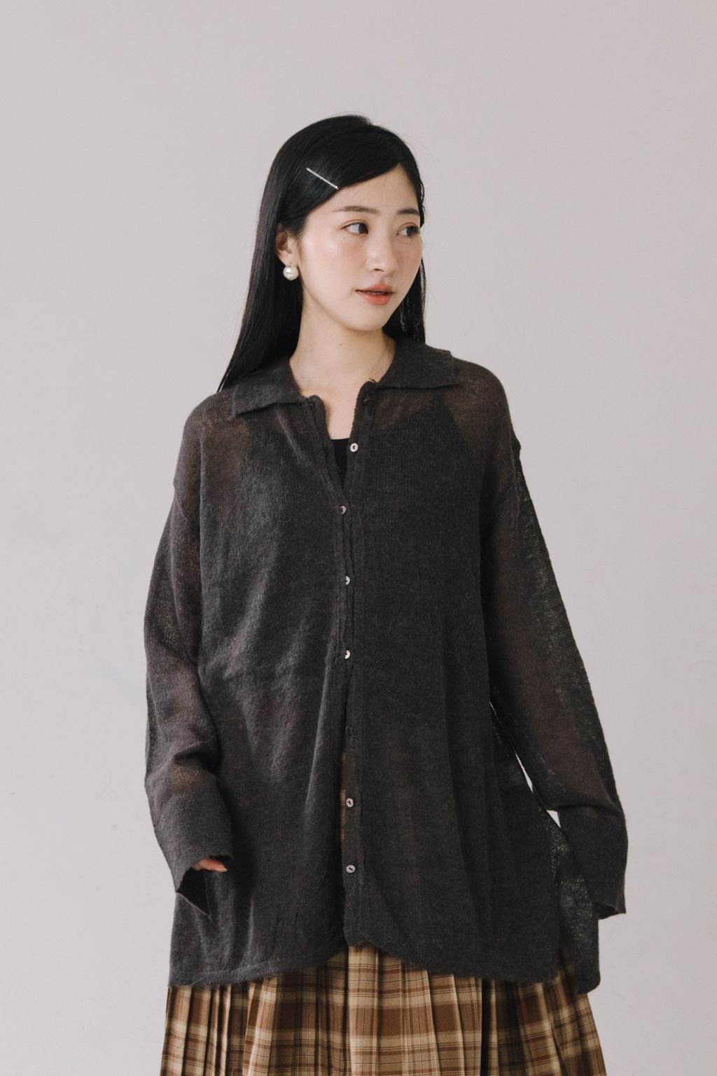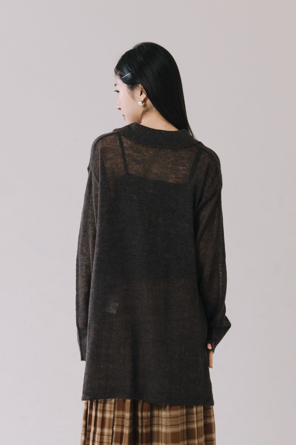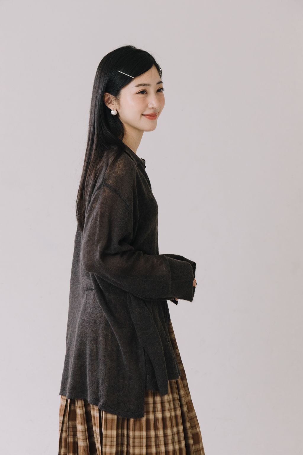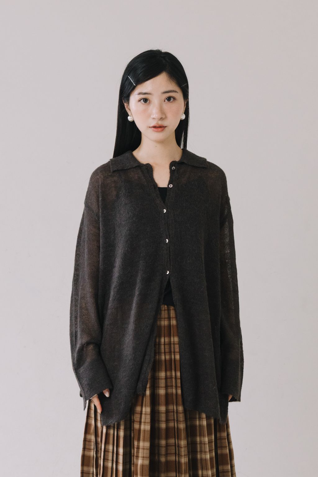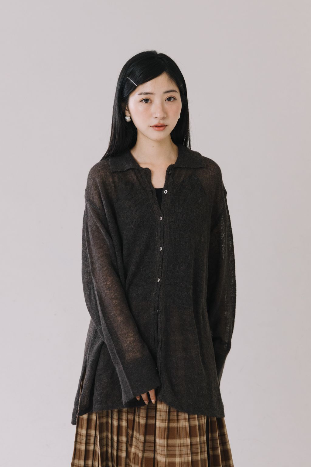 羊駝毛輕薄針織上衣(灰)