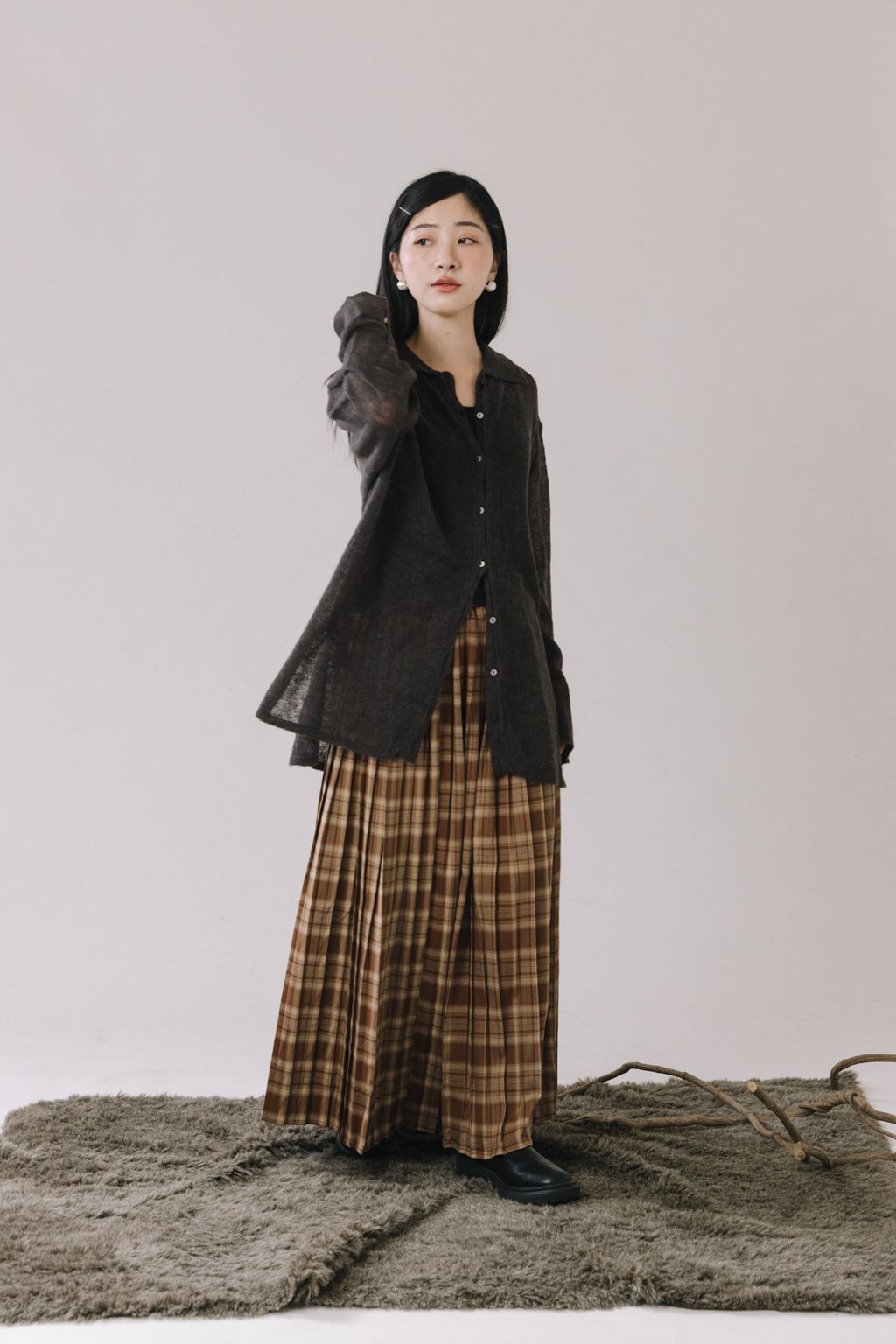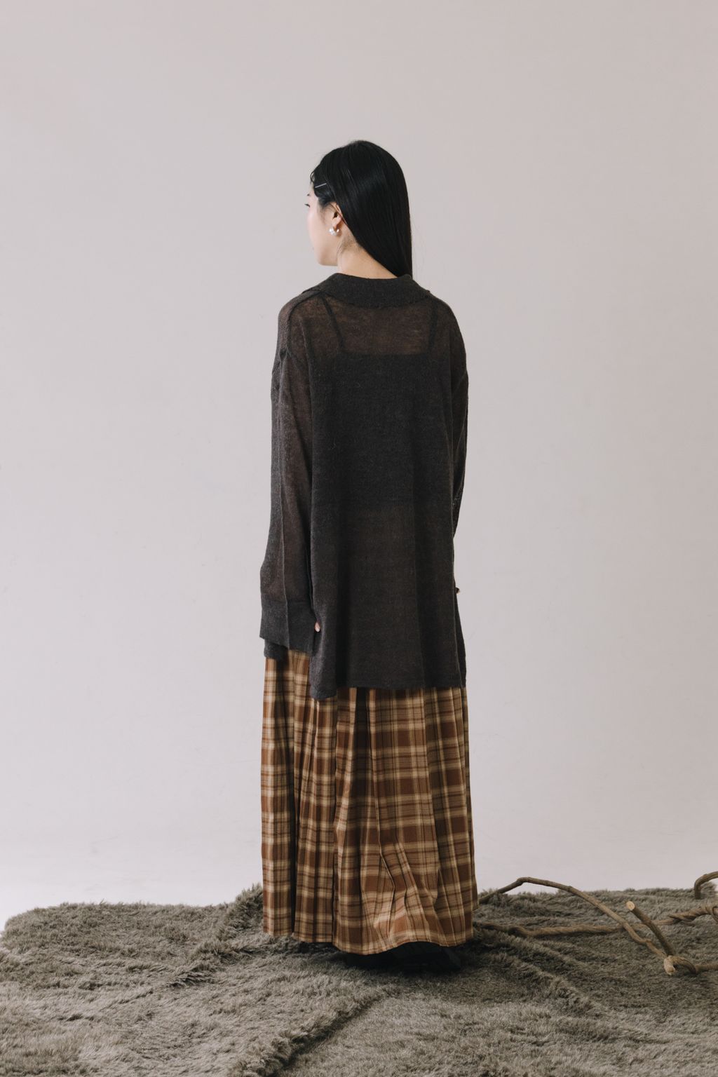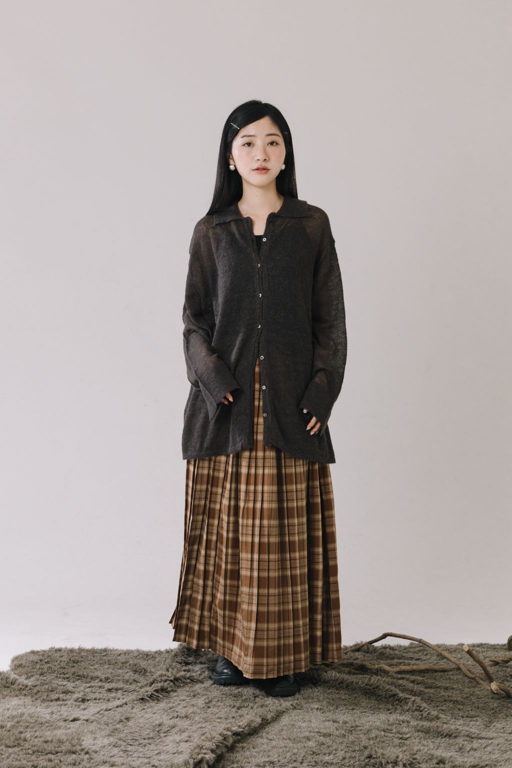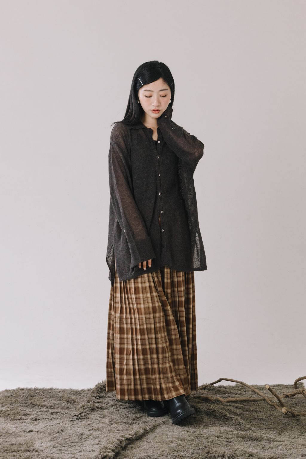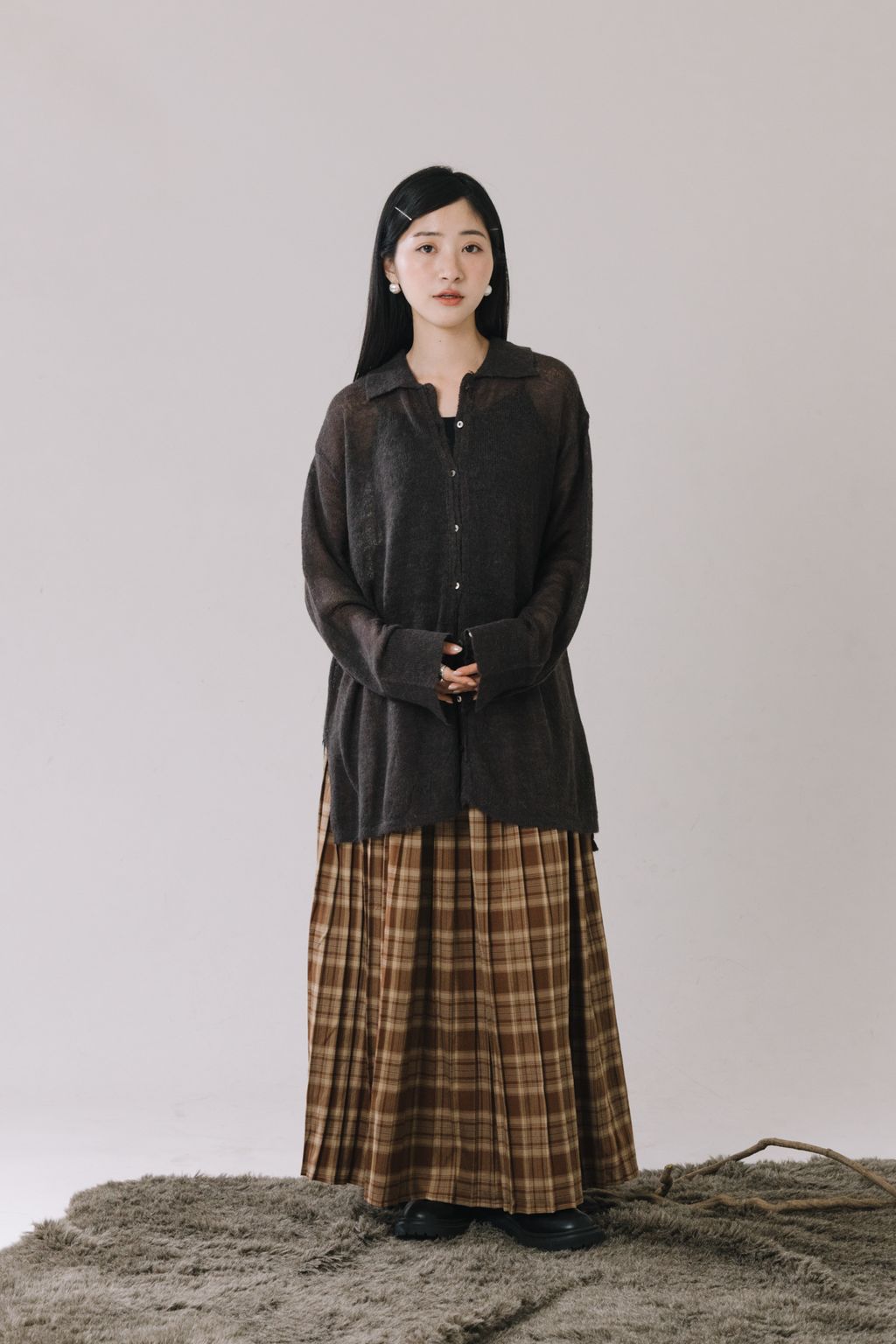 羊駝毛輕薄針織上衣(灰)