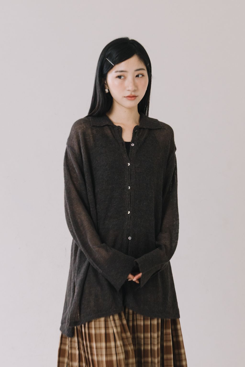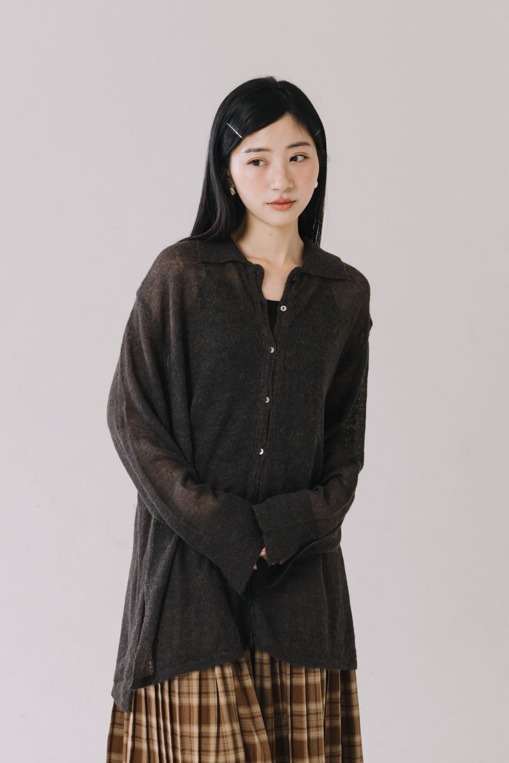 ✿ 領口採翻領 ✸ 前做有鈕扣 ✸ 可單穿也可當罩衫來使用