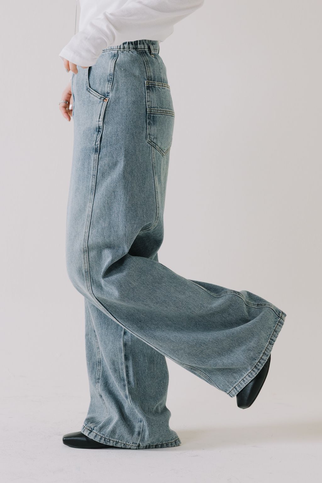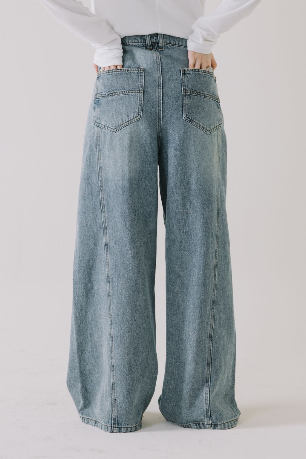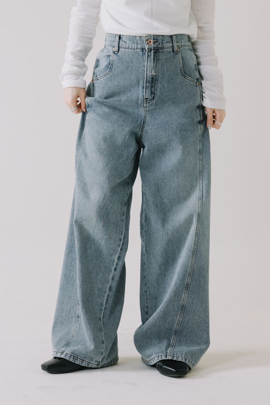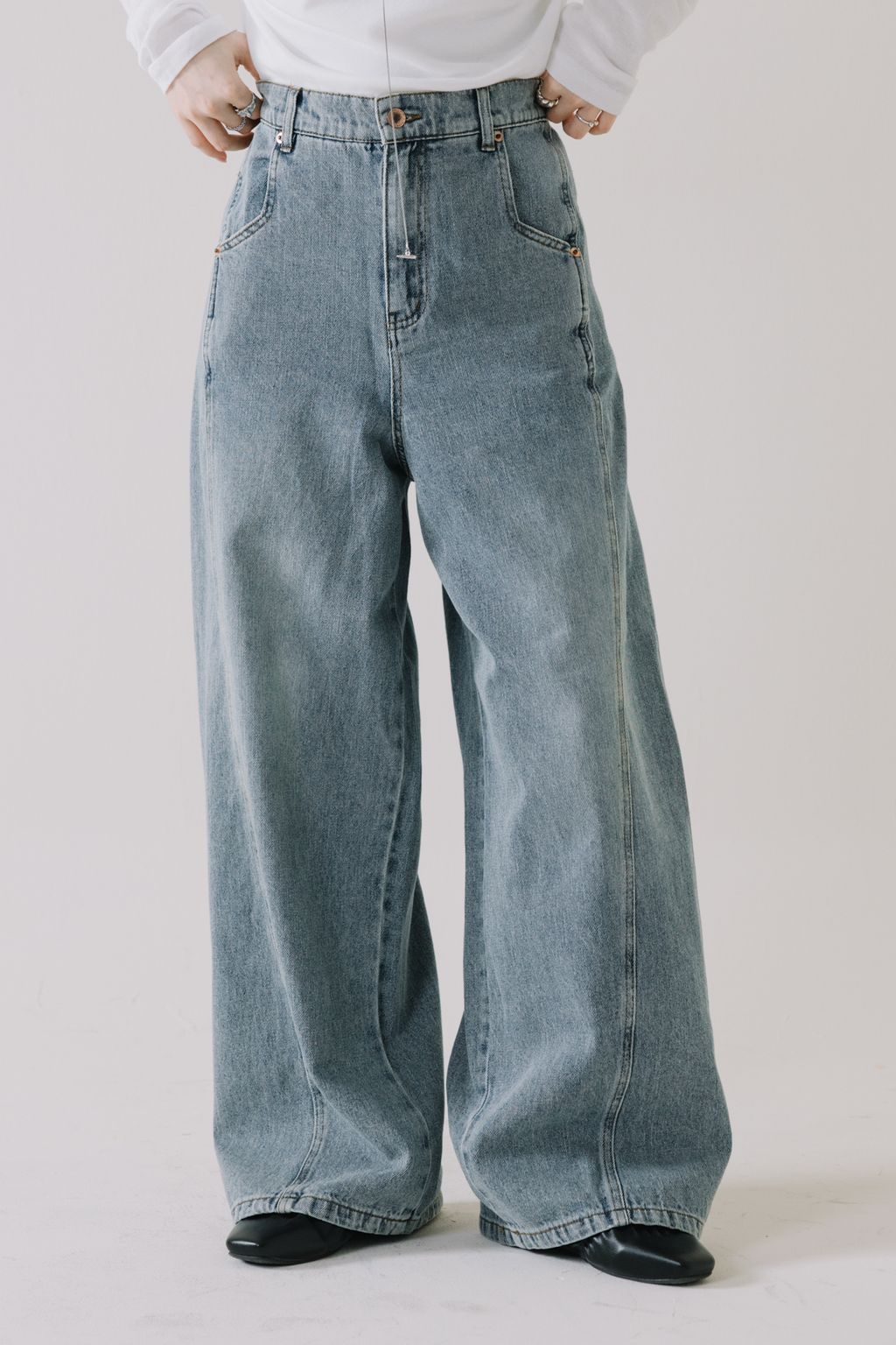 推!10oz造型車線寬鬆牛仔褲(淺藍)