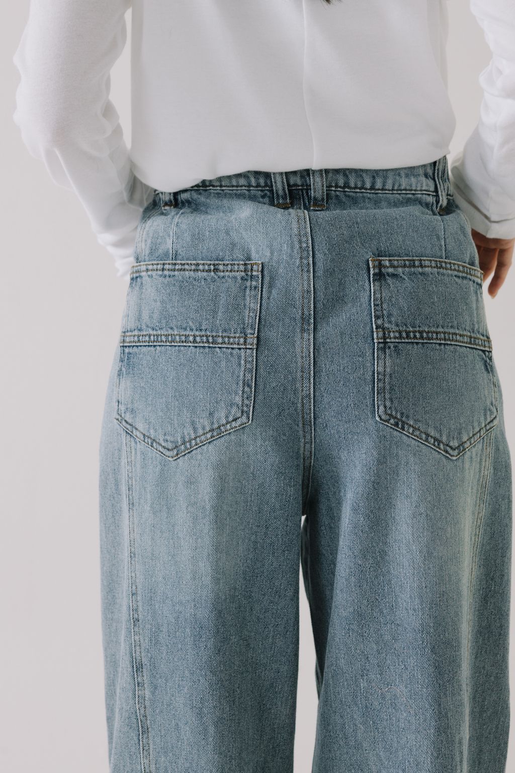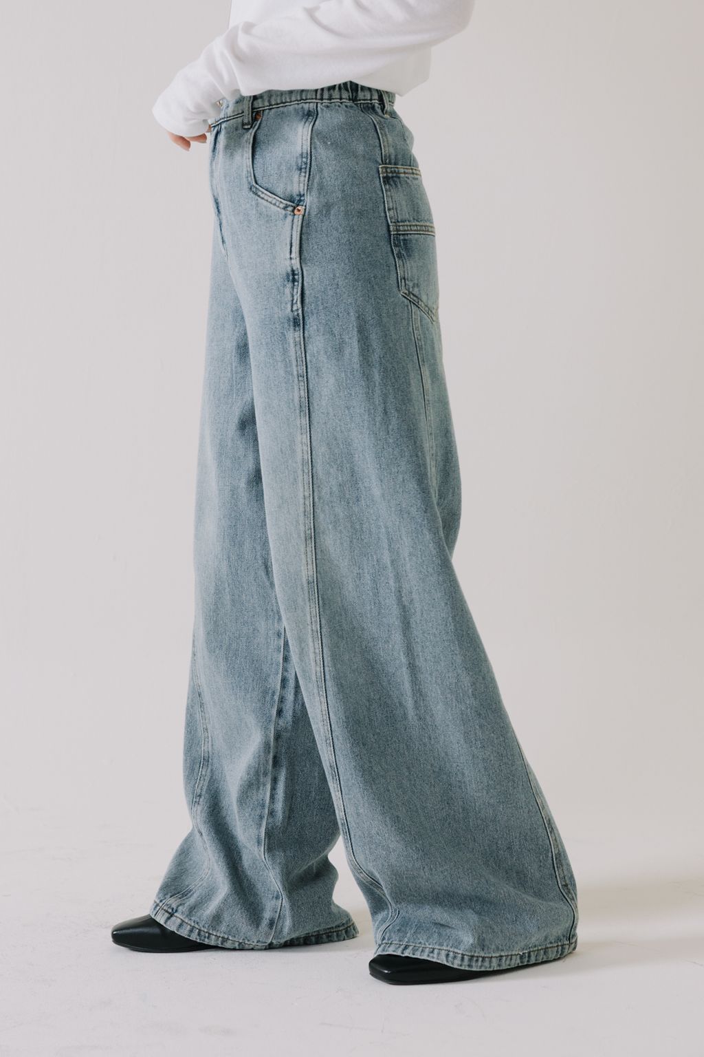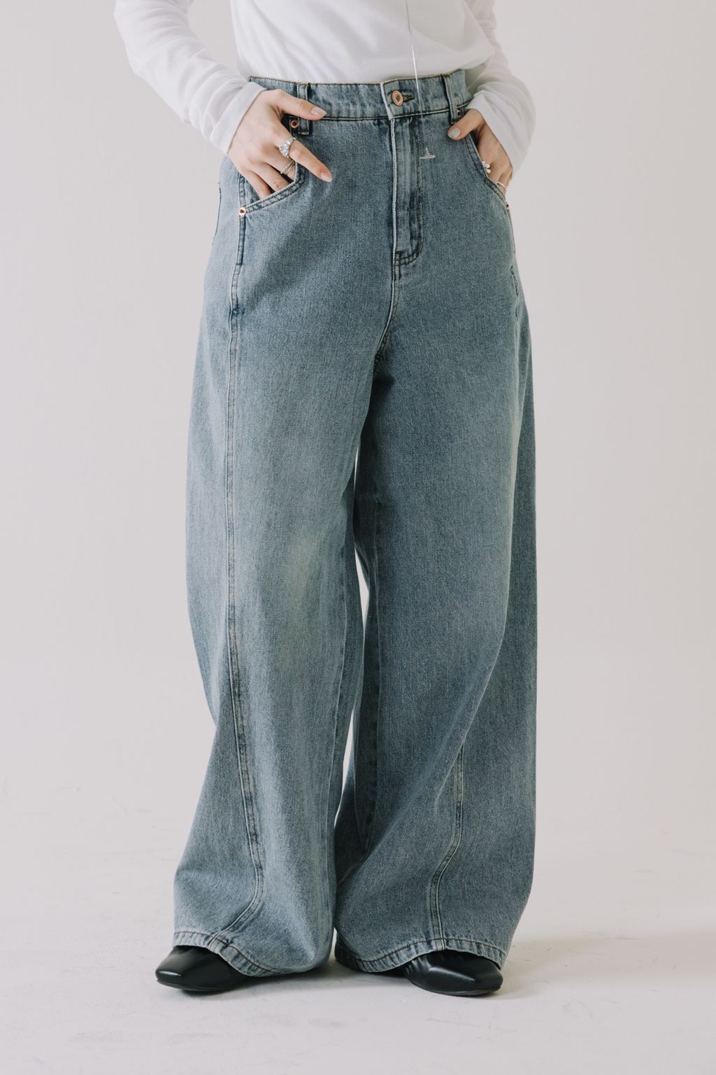 推!10oz造型車線寬鬆牛仔褲(淺藍)