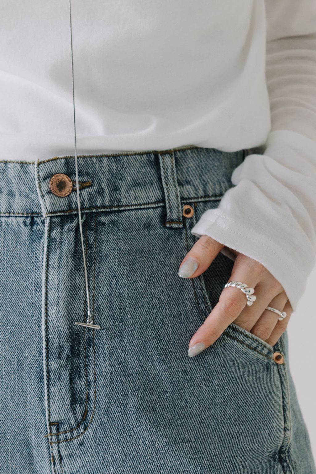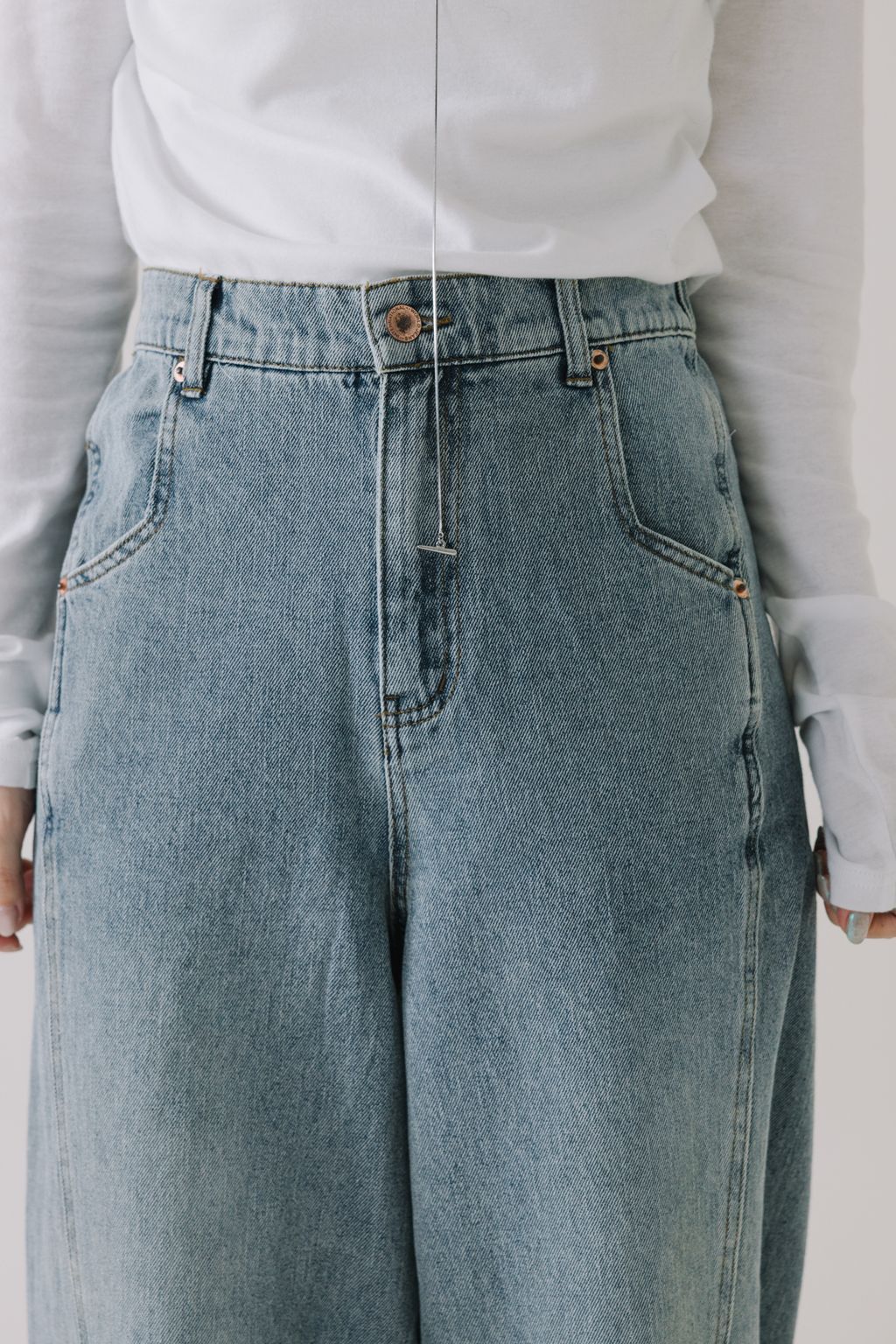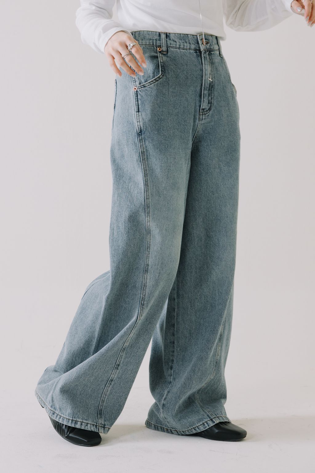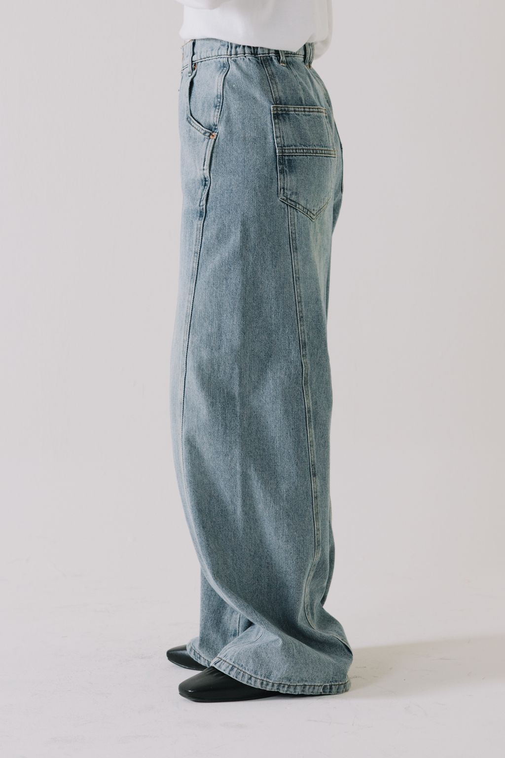 推!10oz造型車線寬鬆牛仔褲(淺藍)