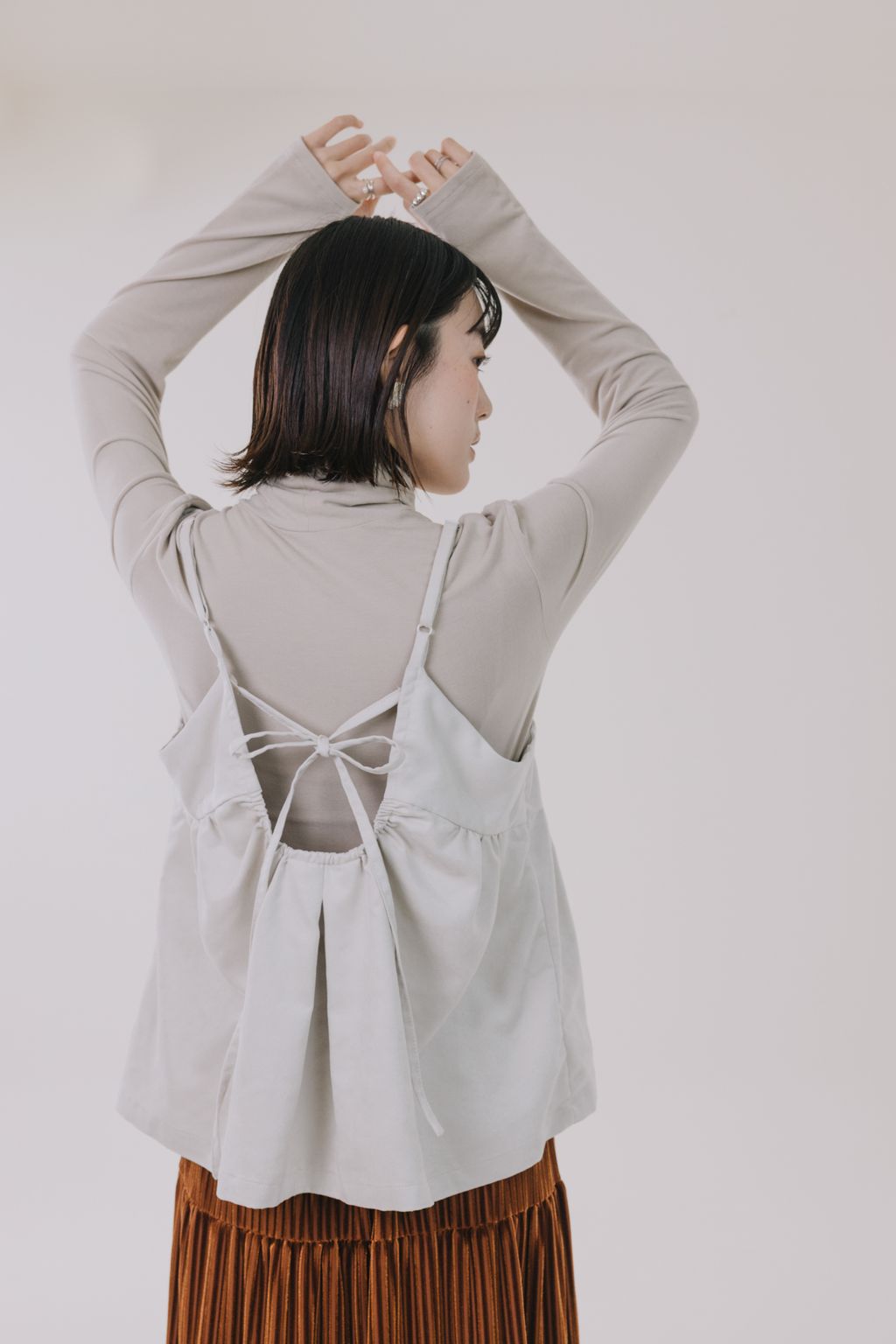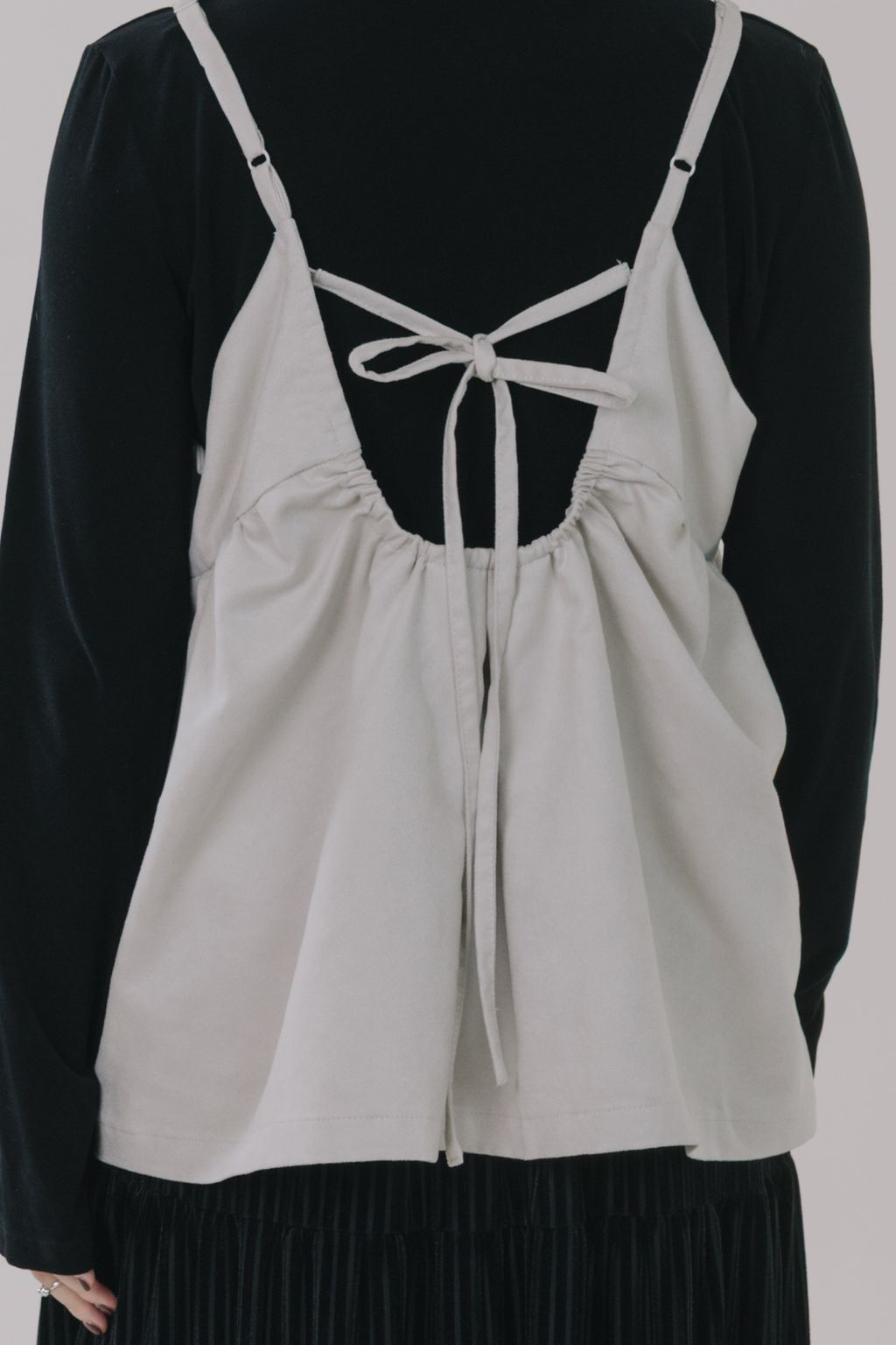 溫潤柔焦麂皮綁帶吊帶背心|象牙米