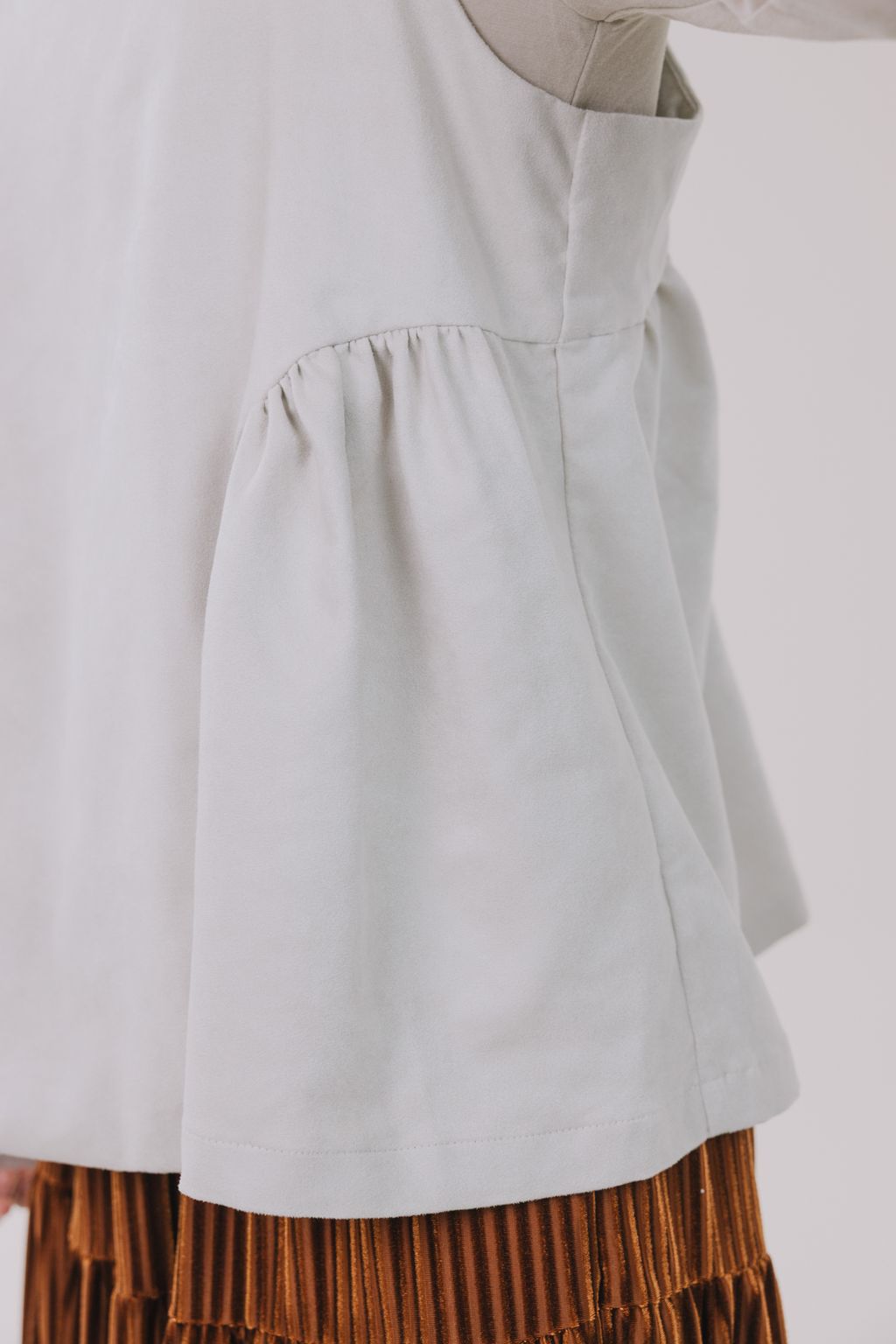 𓇚 側面採圓弧抓褶,後做立體中線開褶,簡約不失精緻